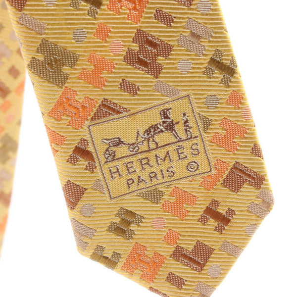 Hermes Hermès silk necktie for men in yellow, orange, and multicolor.