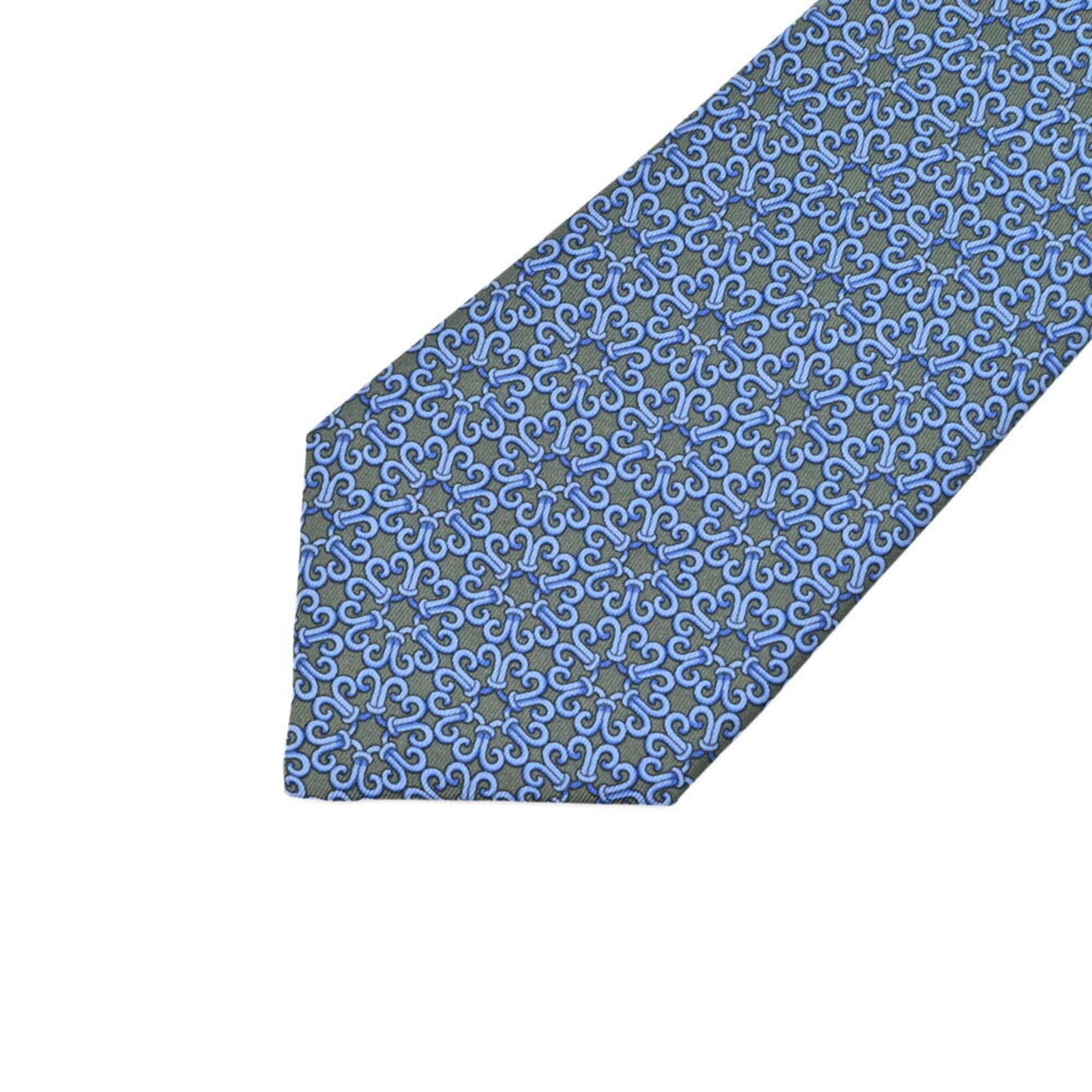 HERMES Hermes Tie Pattern 100% Silk Light Blue Green