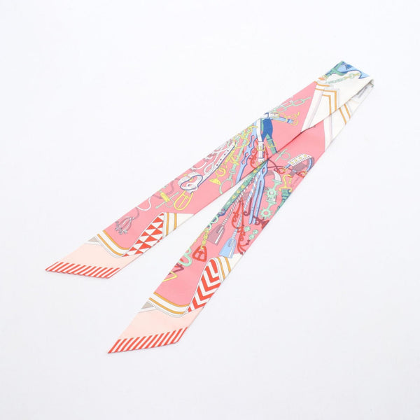 Hermes Hermès Twilly Bouquets Sellier Silk Scarf for Women in Multicolored Pink