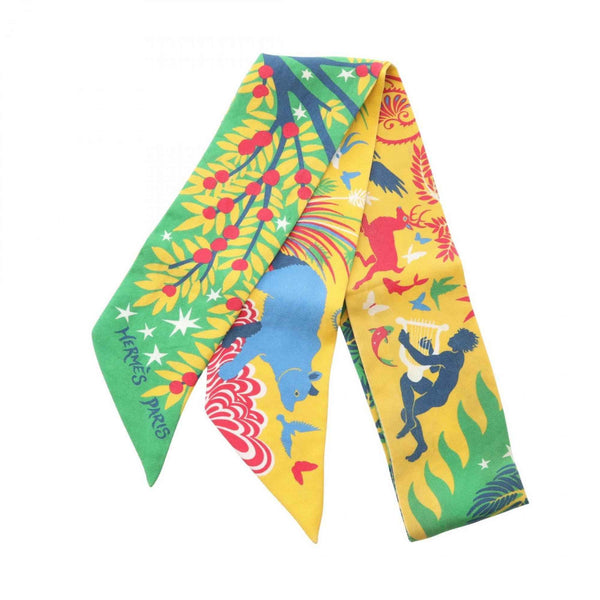 Hermes Hermès Twilly LE CHARME D\'ORPHEE BA Silk Scarf for Women in Multicolor, Yellow and Green