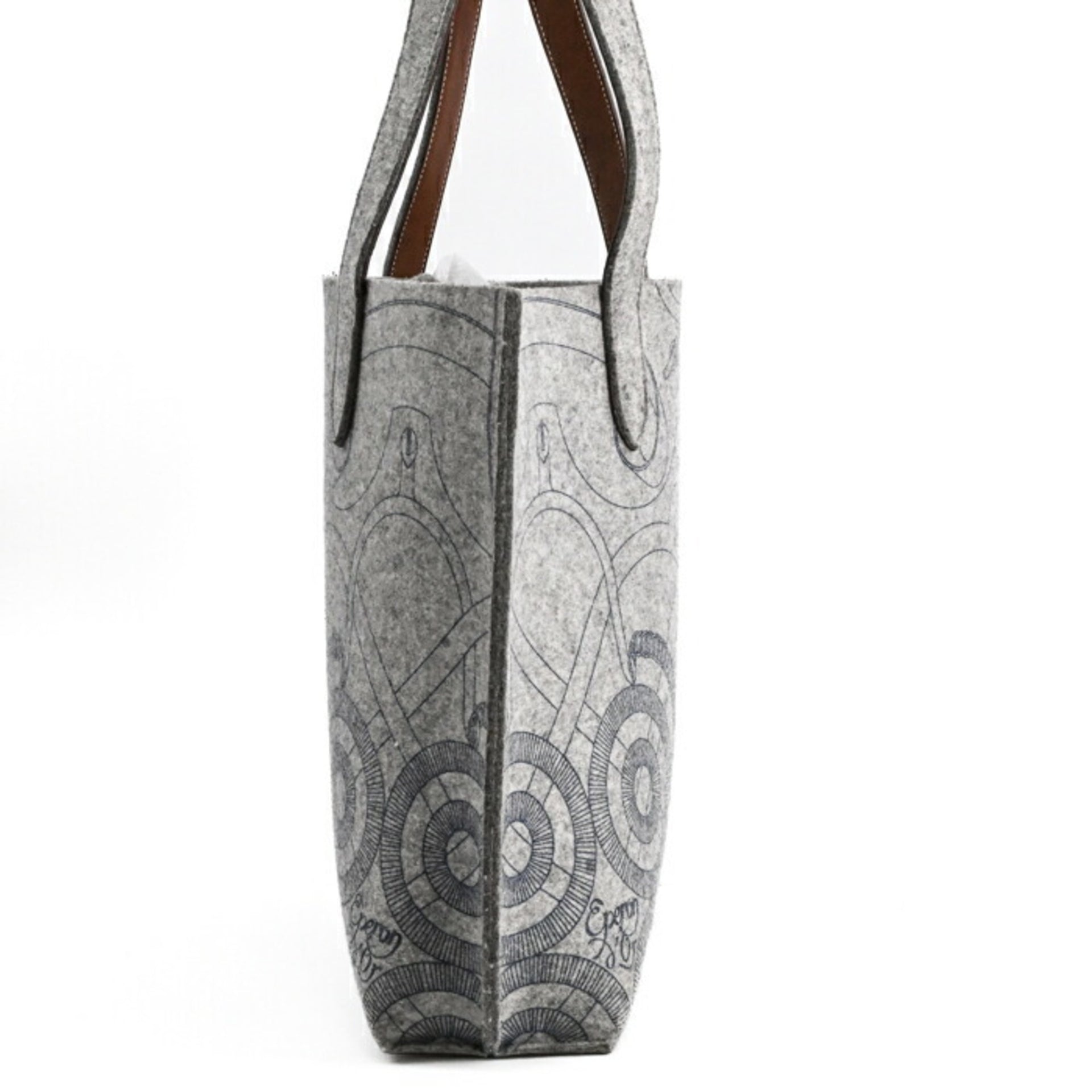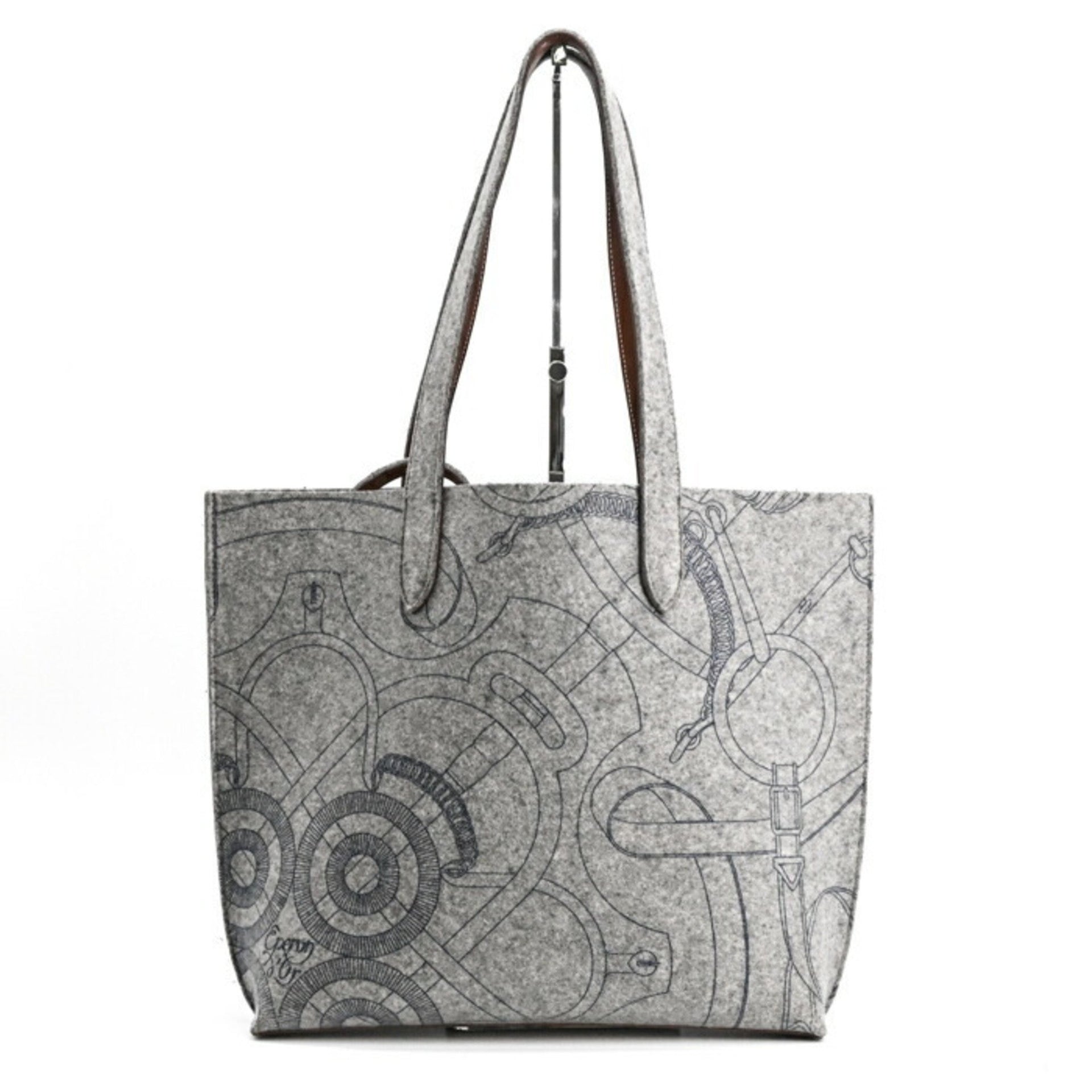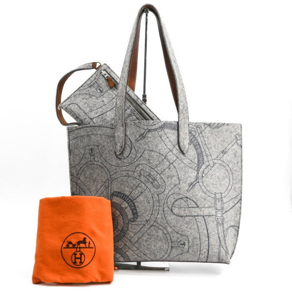 HERMES Karimi MM Tote Bag, Felt and Leather, Gray, Men\'s/Women\'s, #□L