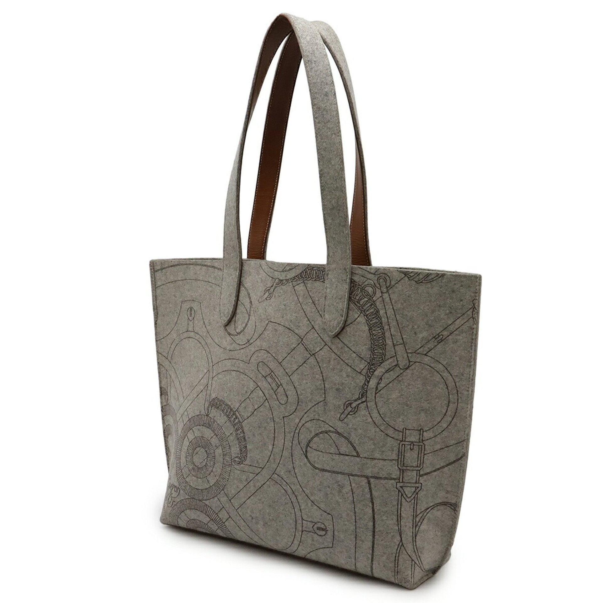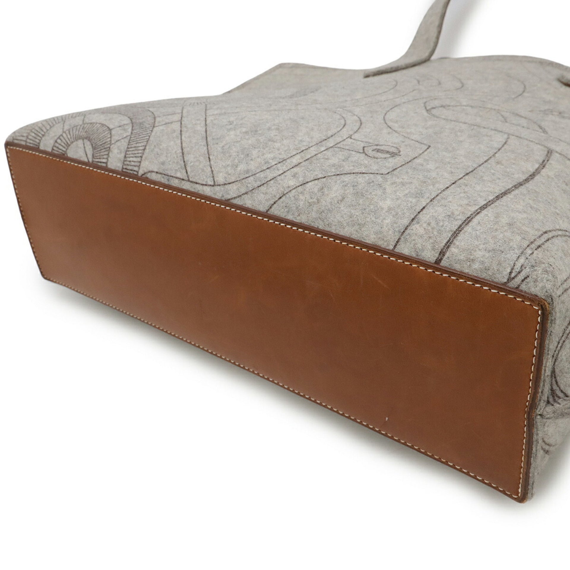 HERMES Karimi MM Tote Bag Large Handbag Felt Leather Gray Brown □L Engraved
