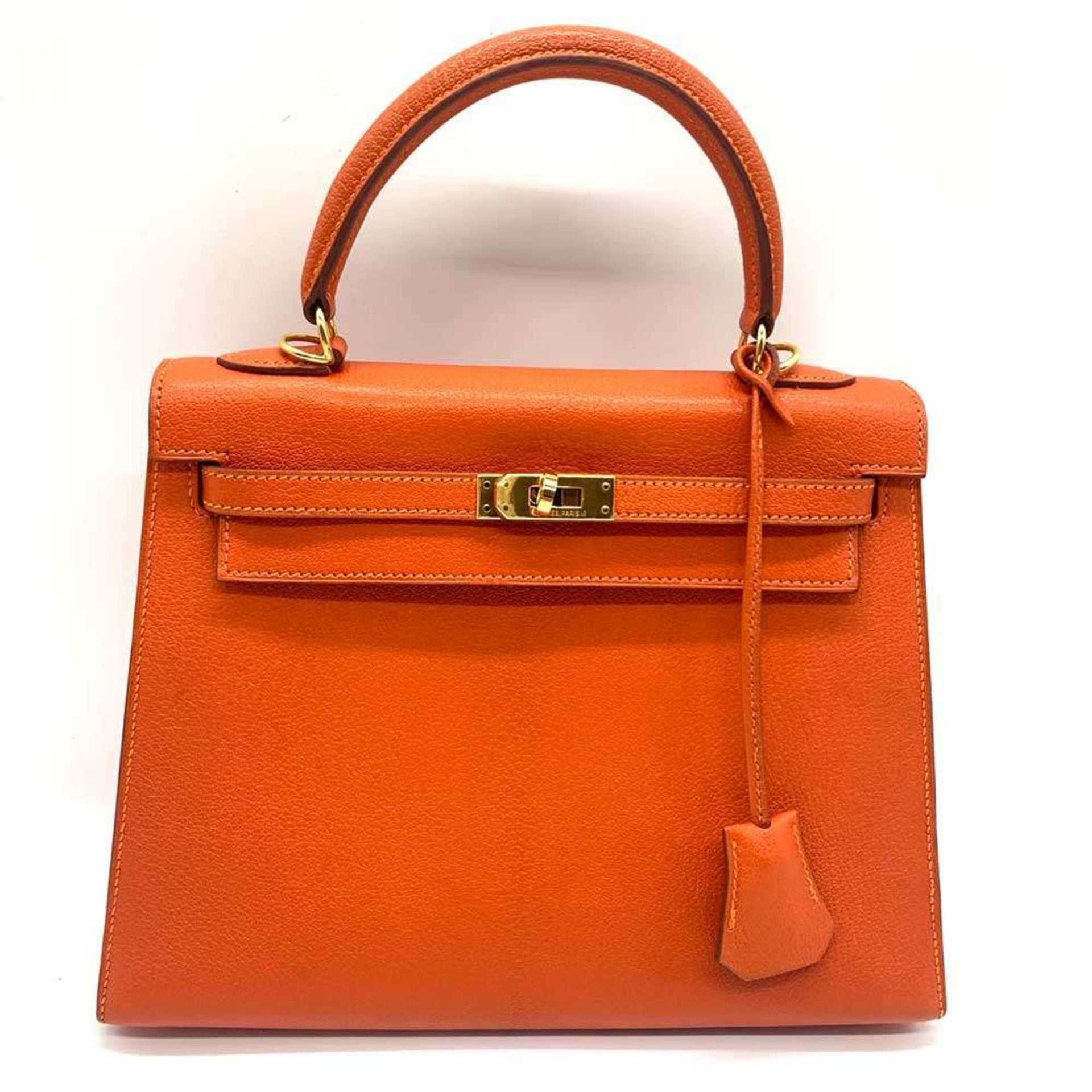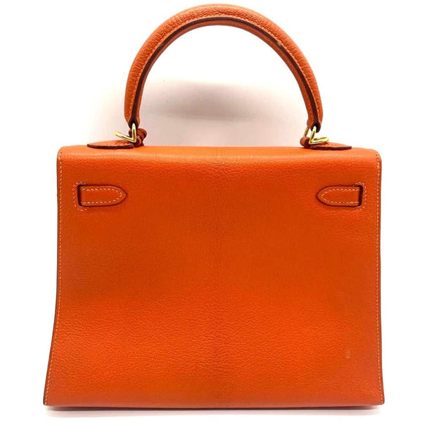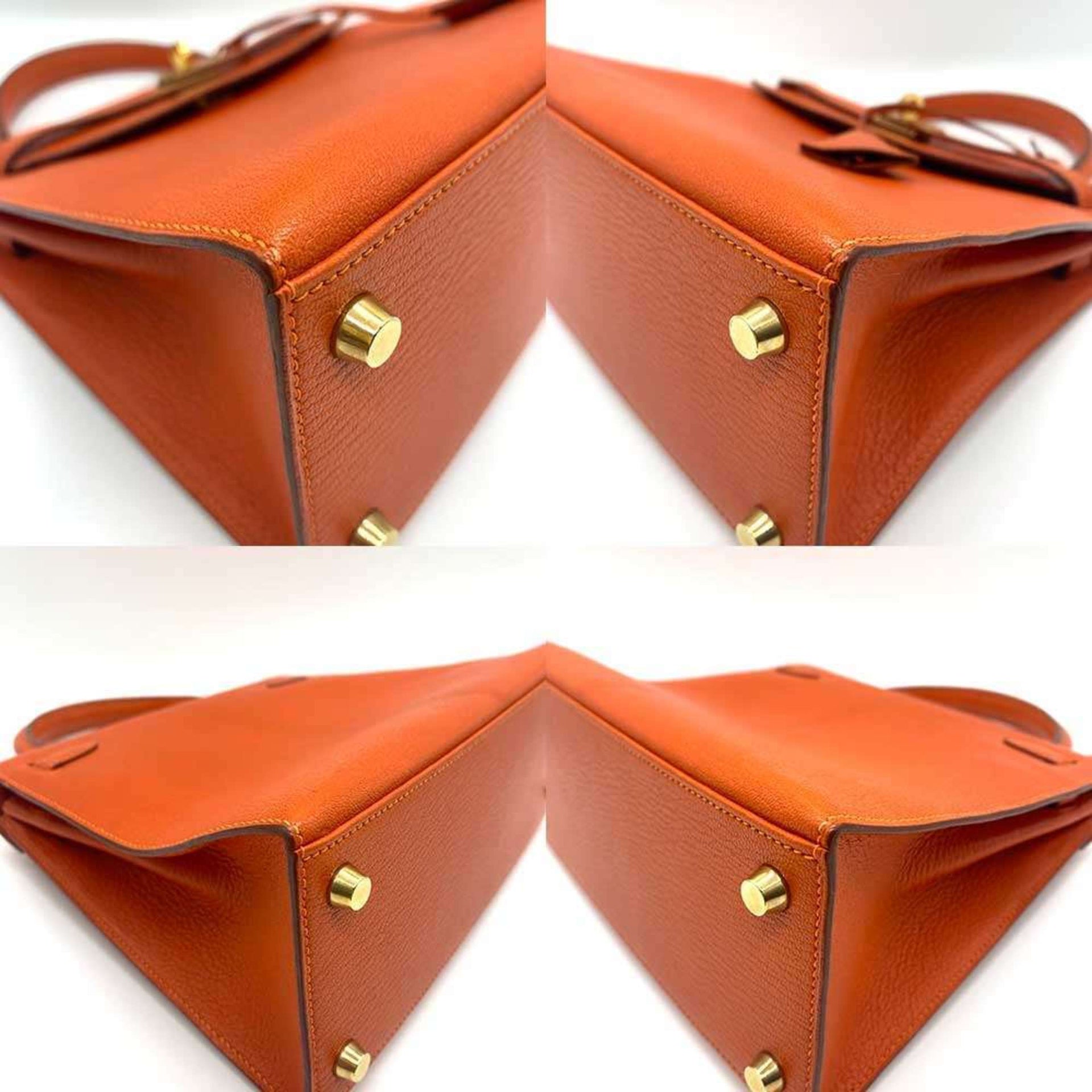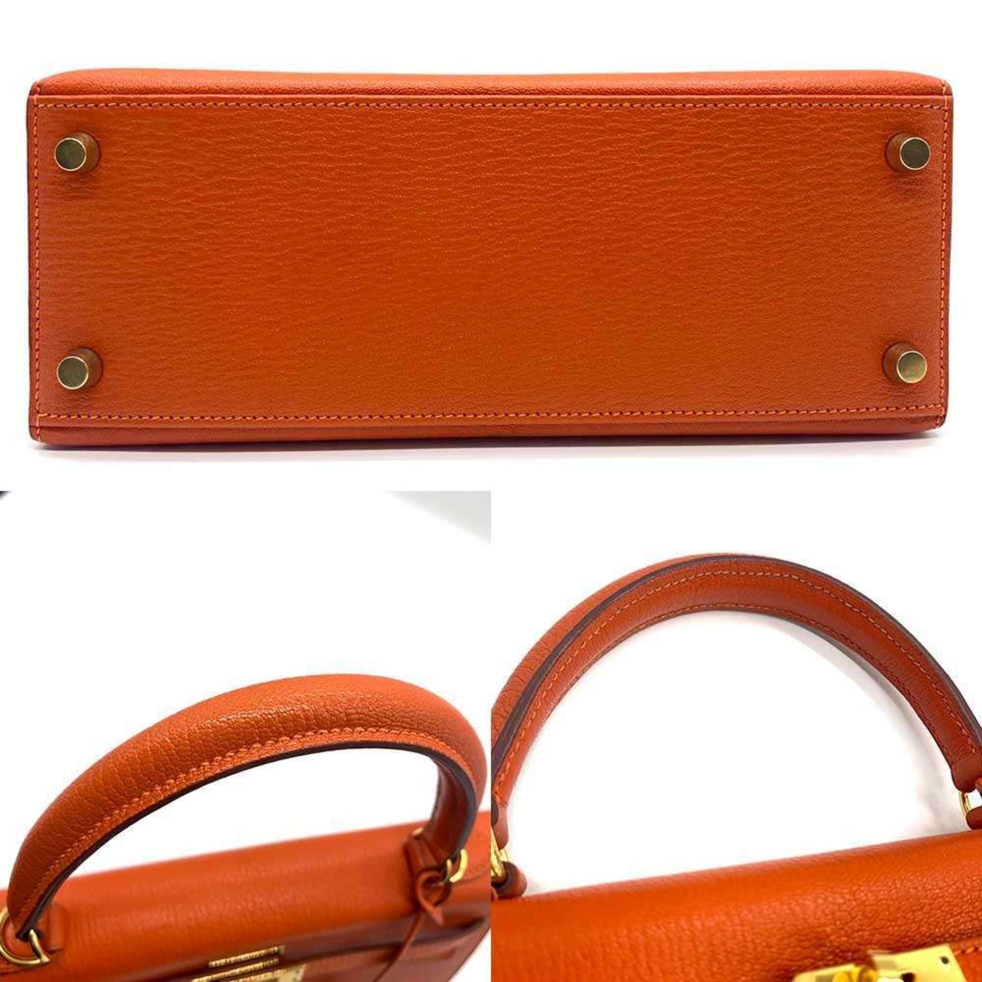 Hermes Kelly 25 Chevre Orange F Stamped Outside Stitching Hand Bag Shoulder Strap