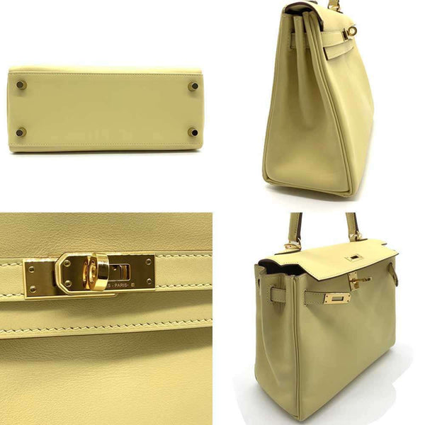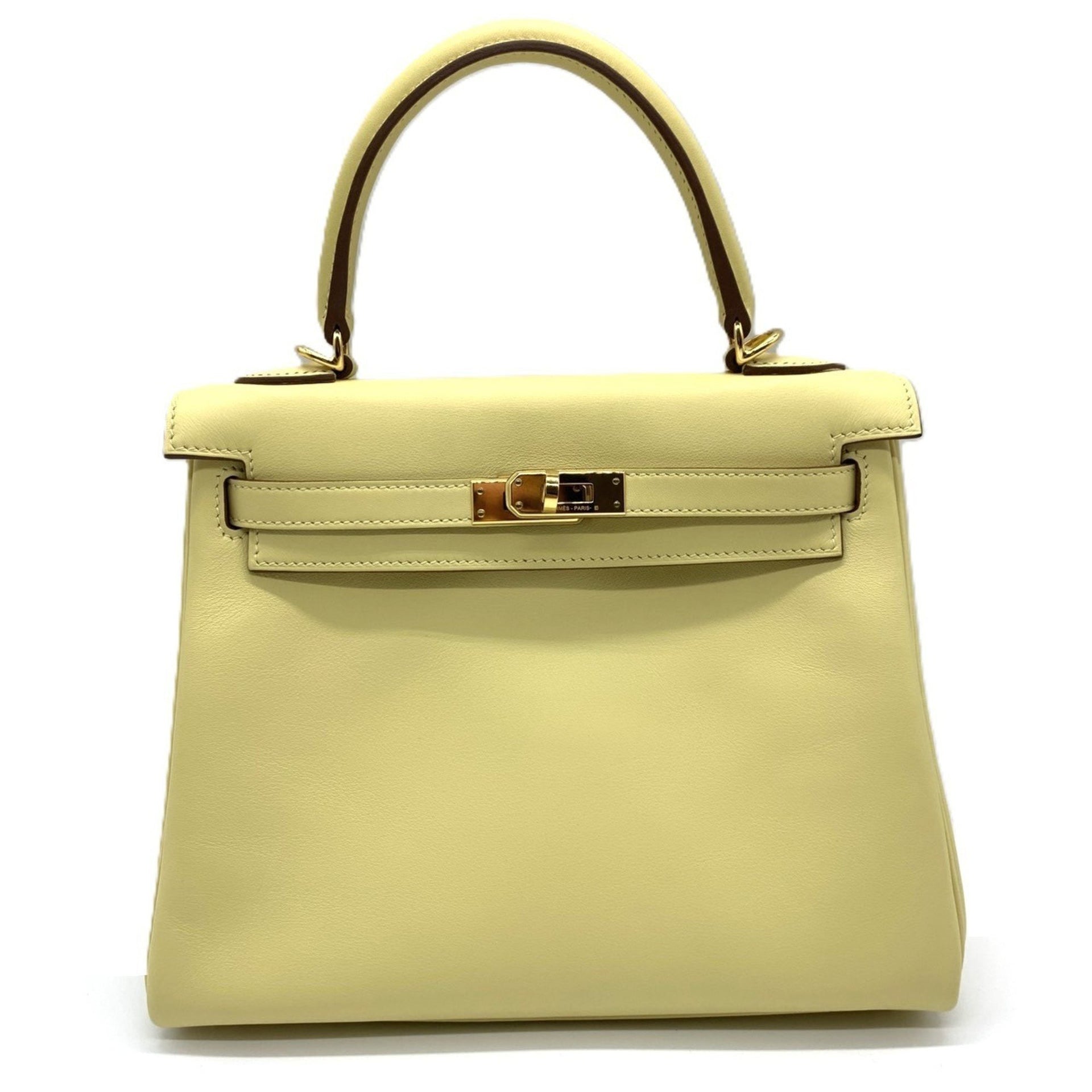 Hermes Kelly 25 Handbag Leather Swift Inner Stitching Jaune Poussin HERMES