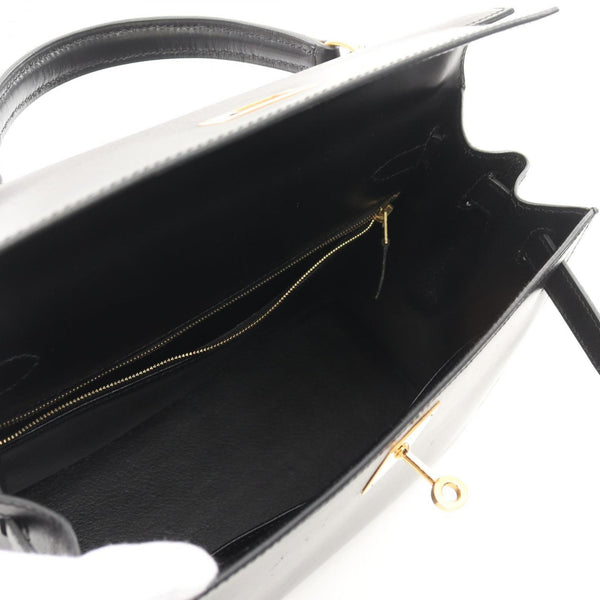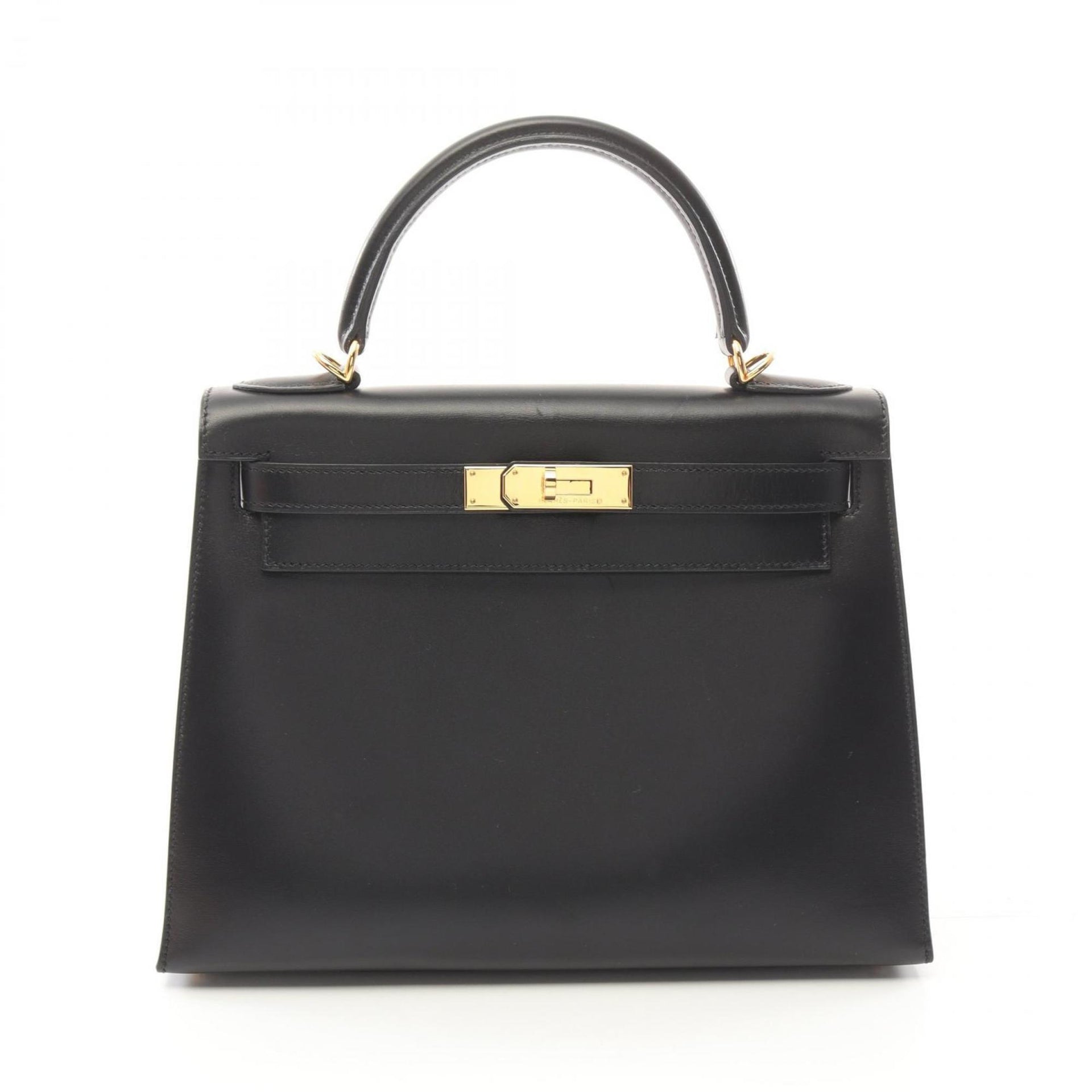 Hermes Kelly 28 Handbag Calfskin (Cowhide) Boxcalf Women\'s Black
