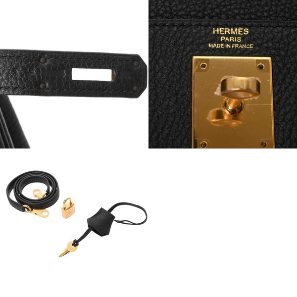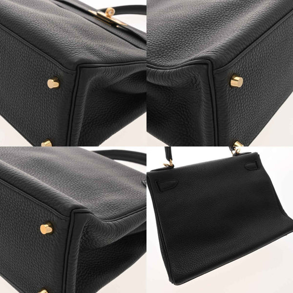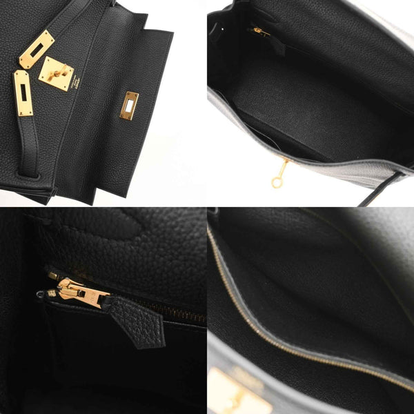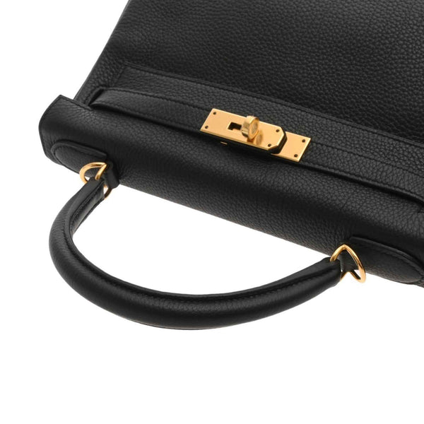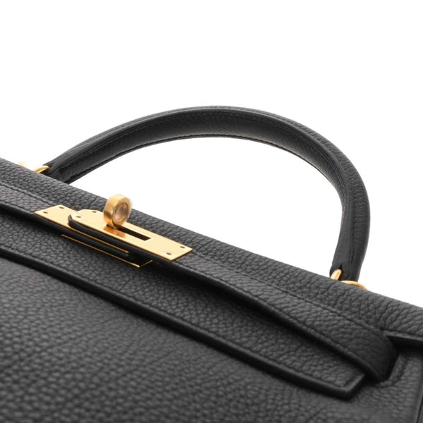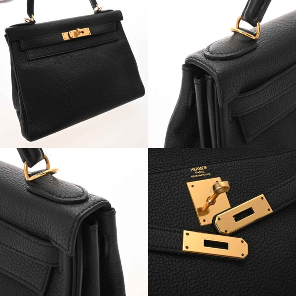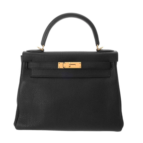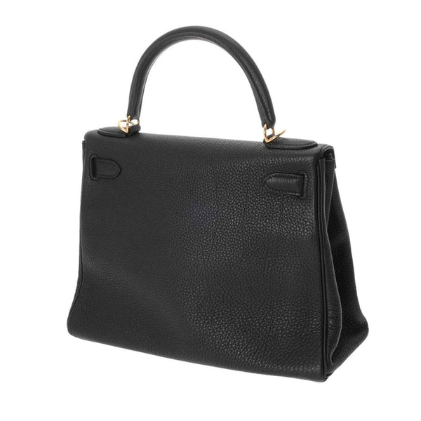HERMES Kelly 28, Inner Stitching, Black, T Stamp (circa 2015), Women\'s Togo Handbag