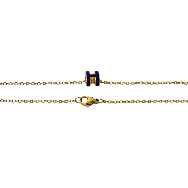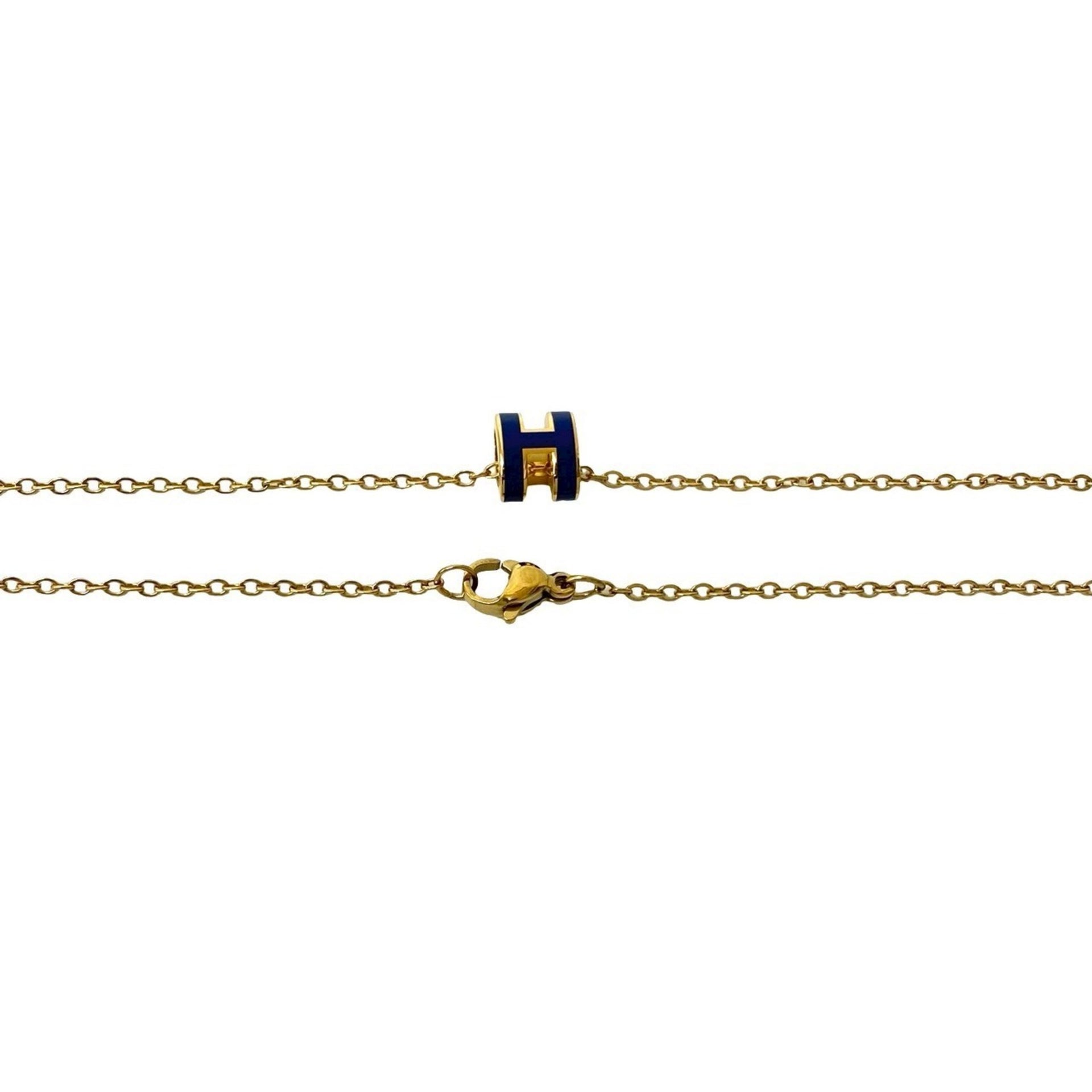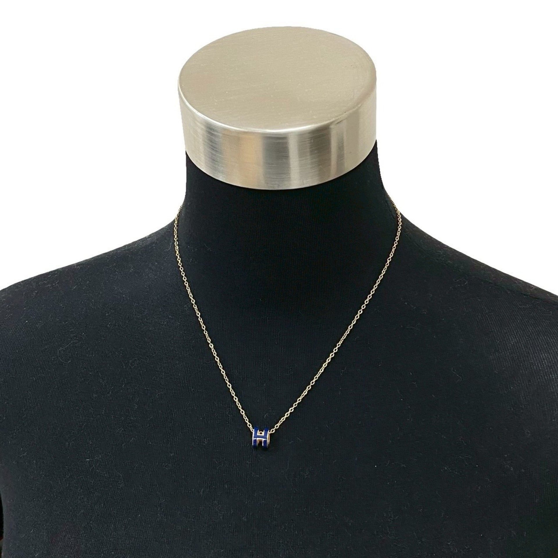 HERMES Mini Pop H Logo Motif Necklace Pendant Accessory Gold Navy 98405