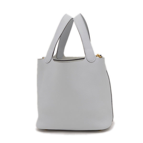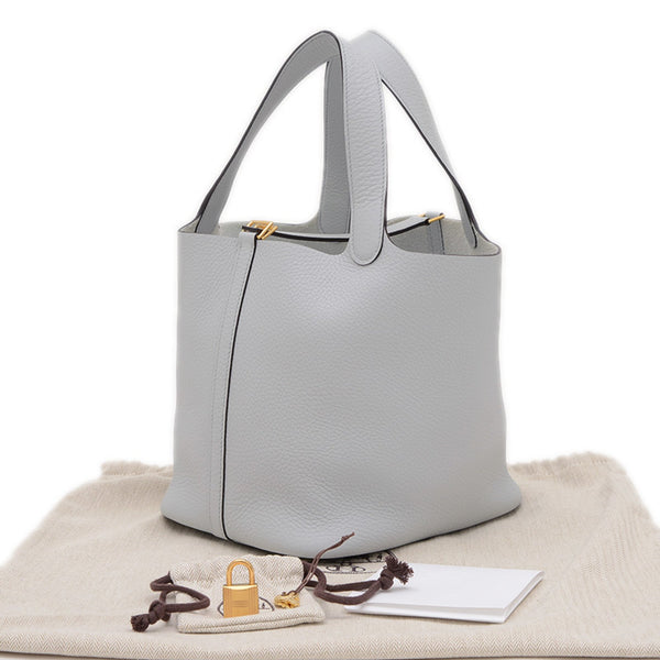 Hermes Picotin Lock MM 22 Handbag Taurillon Blue Pale Gold Hardware B Stamp BP
