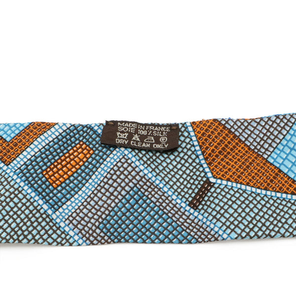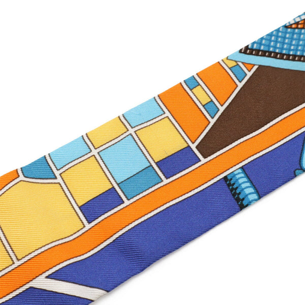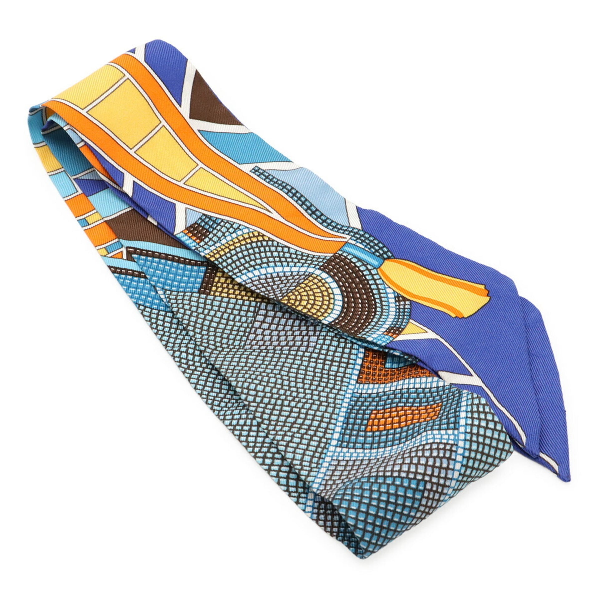 HERMES TWELL Twilly Scarf/Muffler/Bag Scarf/Muffler/Bag, Prairie Indian Art, 100% Silk, Blue