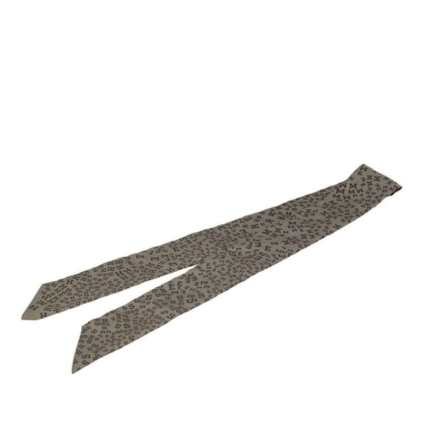 Hermes Twilly Alphabet Print Scarf, Gray and Black Silk, Women\'s, HERMES