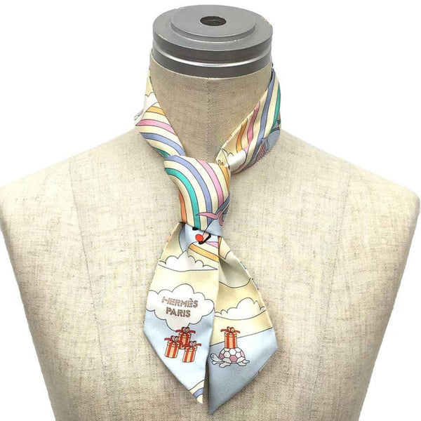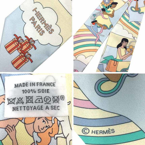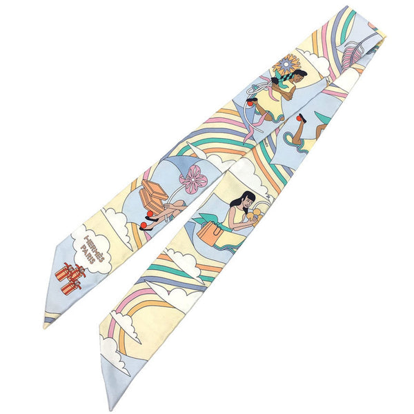HERMES Twilly Scarf Muffler CARRES VOLANTS Flying Carre 2022 Jaune Souffle/Ciel/Vert Jade Silk Hermes