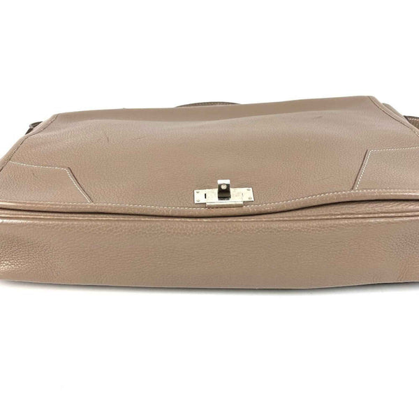 HERMES Victoria Flap Messenger Bag, Business 2-Way Shoulder Crossbody Handbag, Taurillon Clemence Leather, Etoupe, Gray, for Men and Women