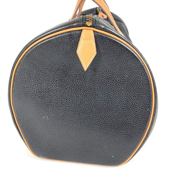 HERMES Vintage Art Deco Travel Bag, Handbag, Two-Tone Cylindrical Boston Ardennes, Black, for Men and Women