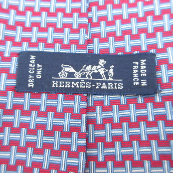 Like new Hermès H-pattern silk burgundy light blue tie 0546HERMES