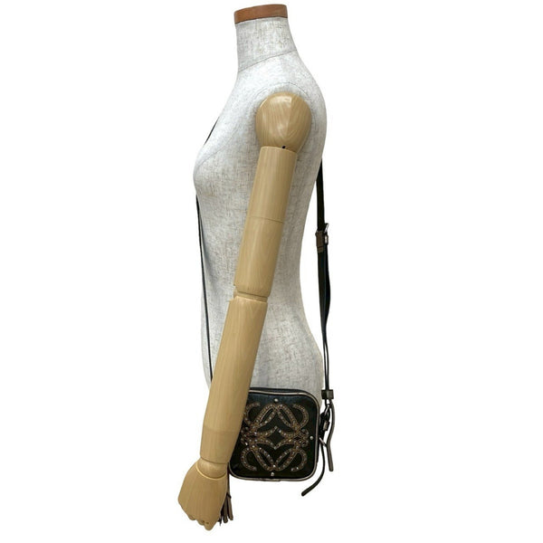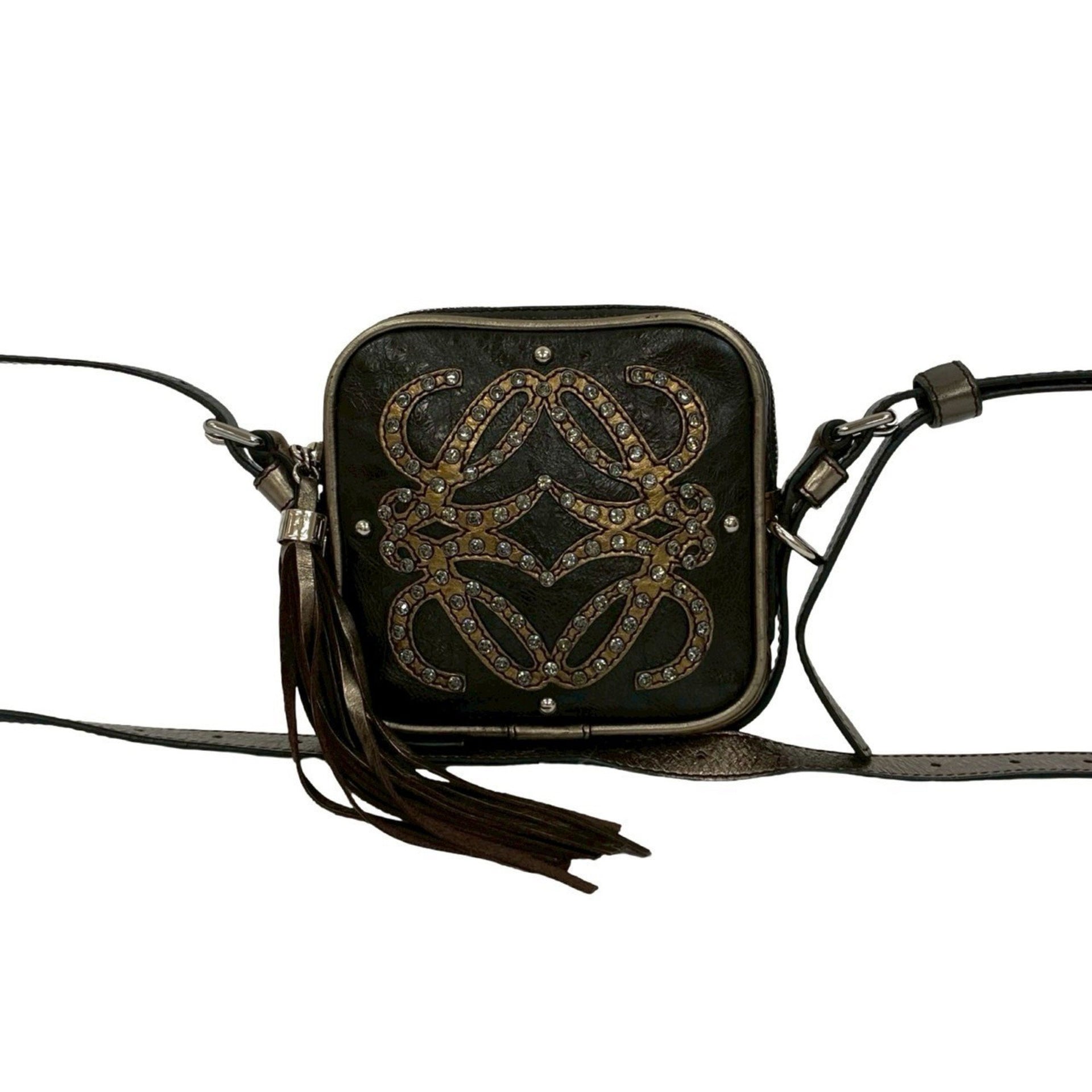 LOEWE Anagram Logo Jeweled Leather Tassel Mini Shoulder Bag Pochette Black Gold 33209