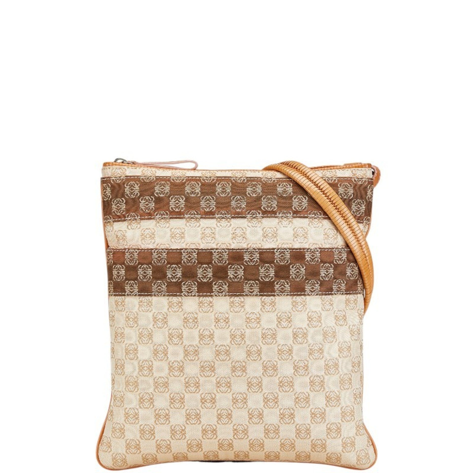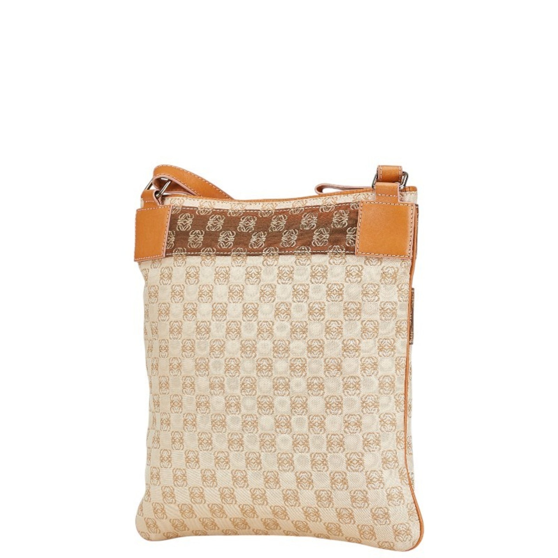 LOEWE Anagram Shoulder Bag 290605 Beige Brown Canvas Leather Women\'s