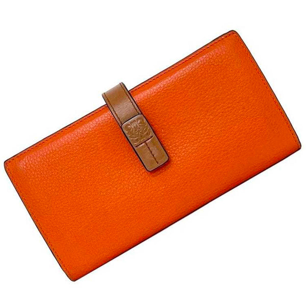 LOEWE Bi-fold Long Wallet Vertical Large f-21349 Orange Brown Anagram C660S40X01 Leather 061852 Grain Women\'s