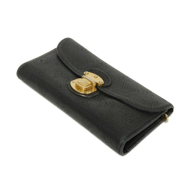 Louis Vuitton Amelia Portefeuille Long Wallet with Perforated Blapshlock Trifold Monogram Mahina Noir M95549 for Men and Women