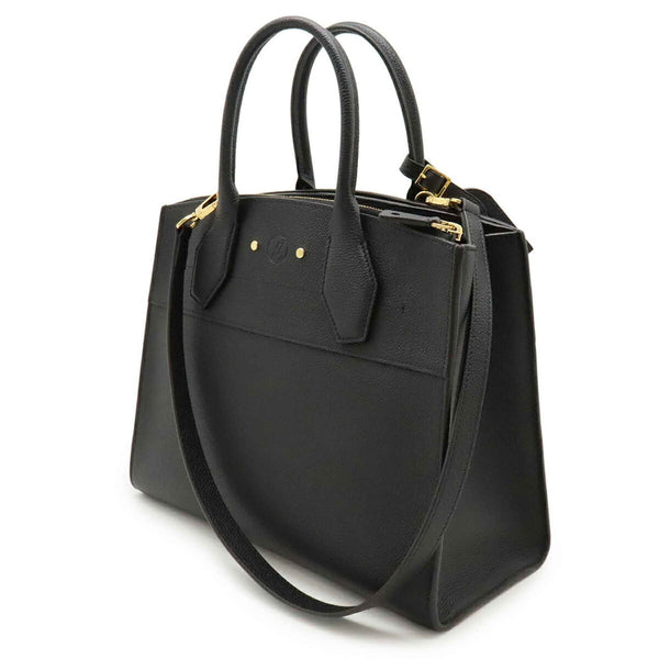 LOUIS VUITTON City Steamer MM Handbag/Shoulder Bag in Taurillon Leather Noir and Black (M53015)