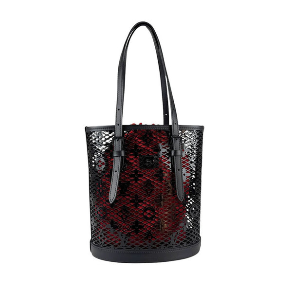 LOUIS VUITTON Handbag Monogram Lace Bucket PM Patent Leather Black M20352 z4406