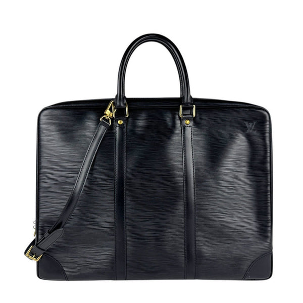 Louis Vuitton LOUIS VUITTON Handbag Shoulder Bag Epi Porto Document Voyage Leather Black Gold Men\'s M40321 z5073