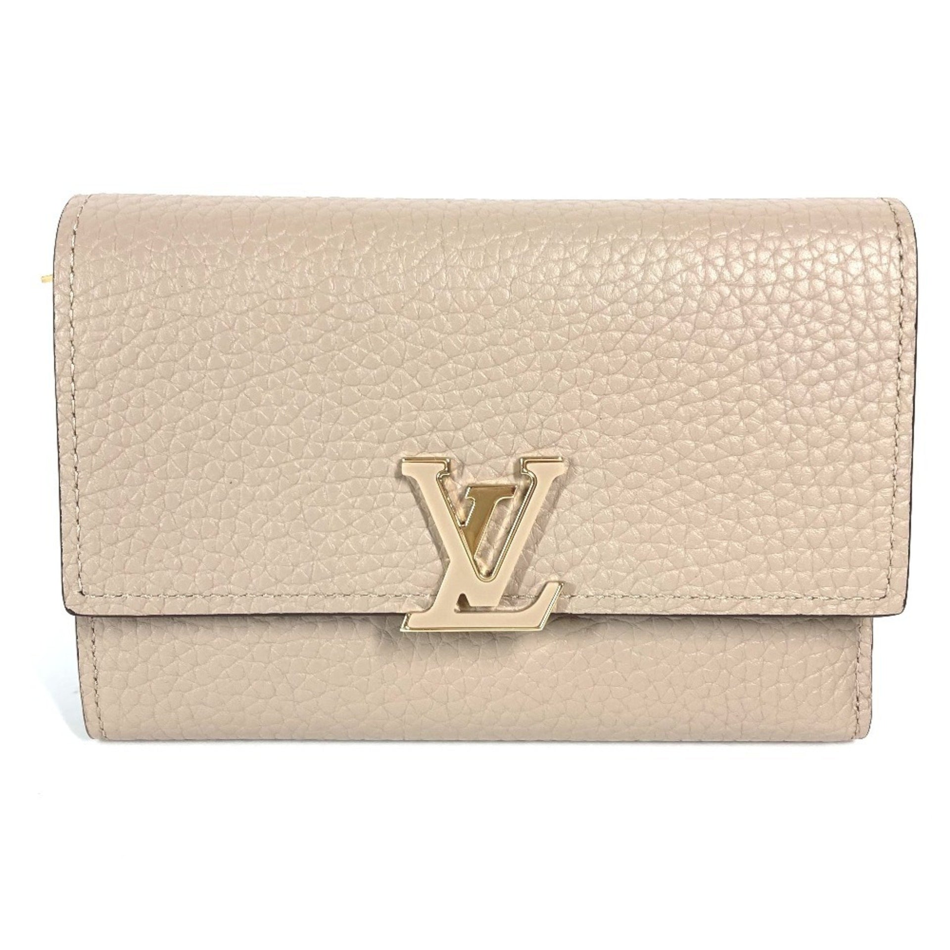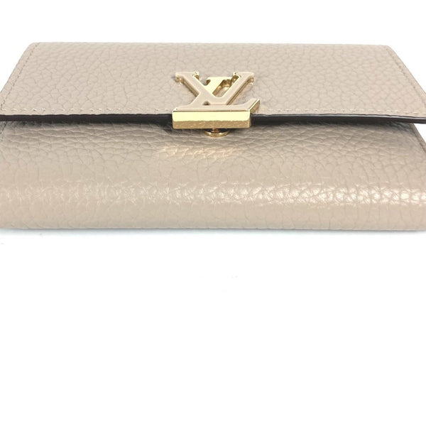 LOUIS VUITTON M62159 Portefeuille Capucines Compact Tri-fold Wallet in Taurillon Leather, Beige, Like New