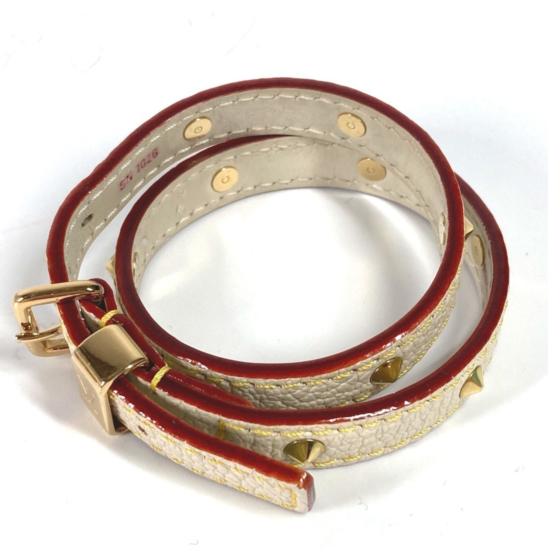 LOUIS VUITTON M91846 Suhali Brass Les Double Tours Bracelet, Women\'s, Leather, Blanc White