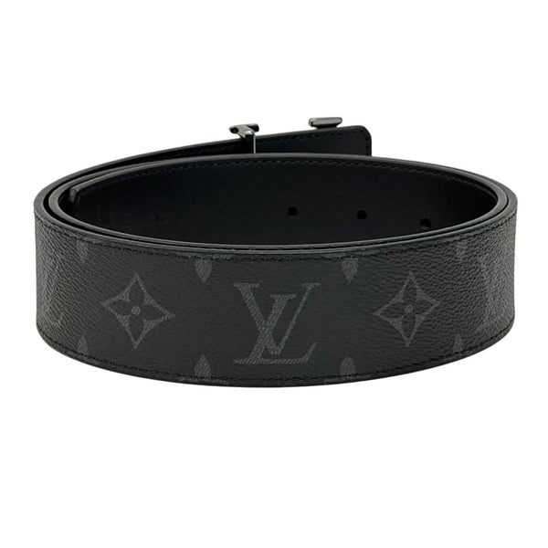Louis Vuitton Monogram Eclipse Men\'s Belt with LV Initials, 40mm, Black/Gray, M9043, Reversible