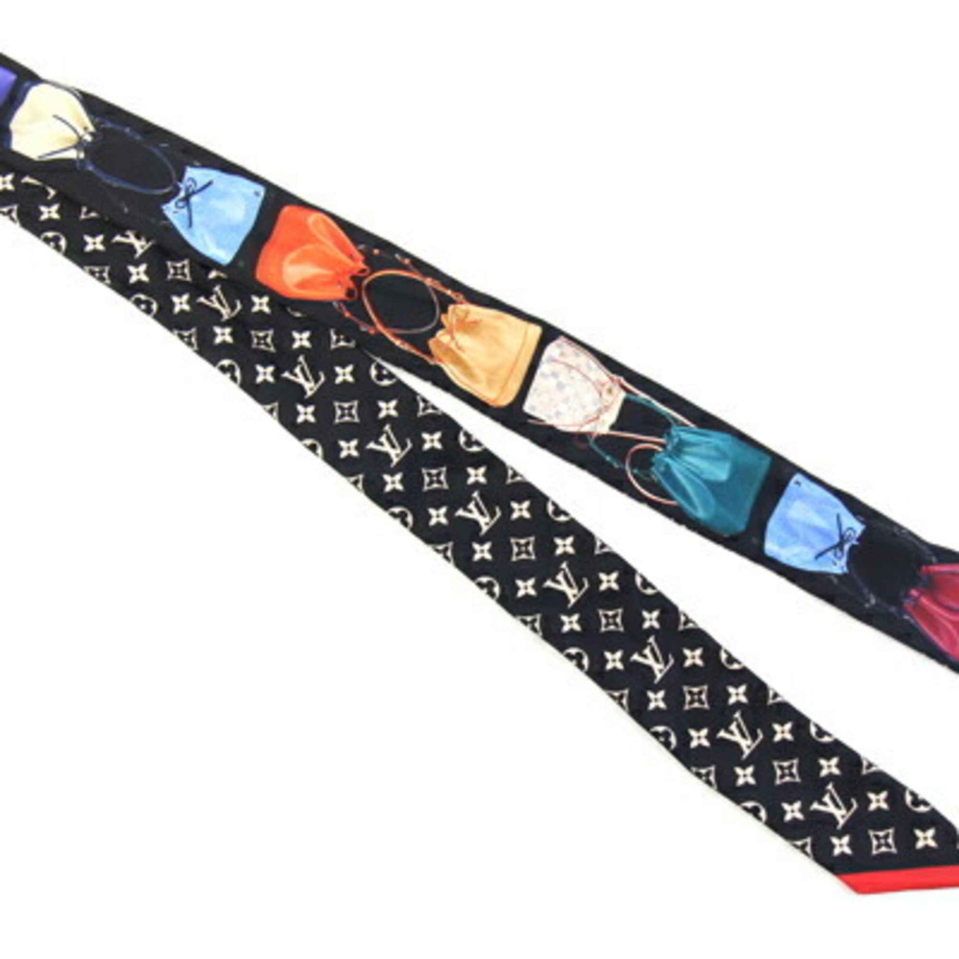Louis Vuitton Scarf/Muffler Bandeau BB Tribute to Noe M70857 Black/Red 100% Silk Ribbon Scarf Bag Charm Monogram Women\'s LOUIS VUITTON