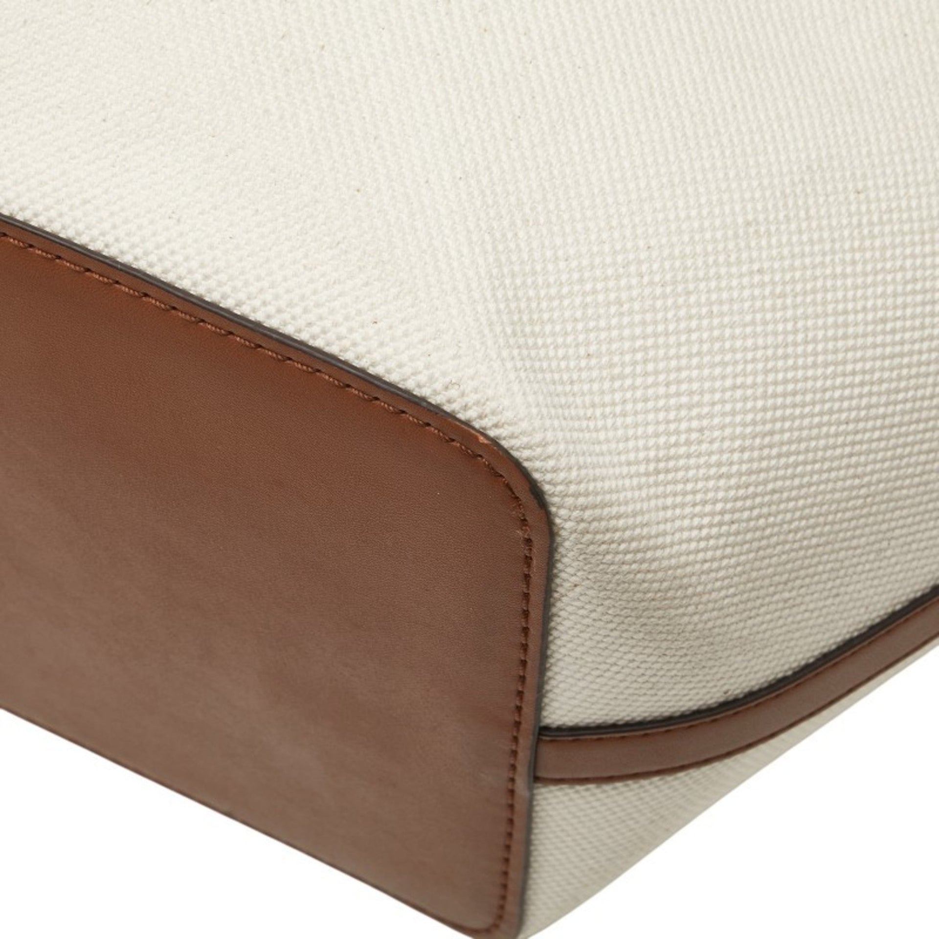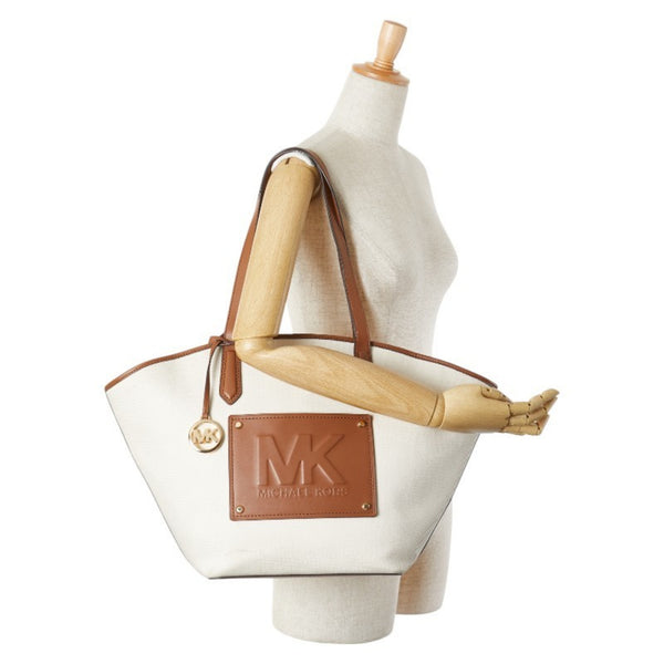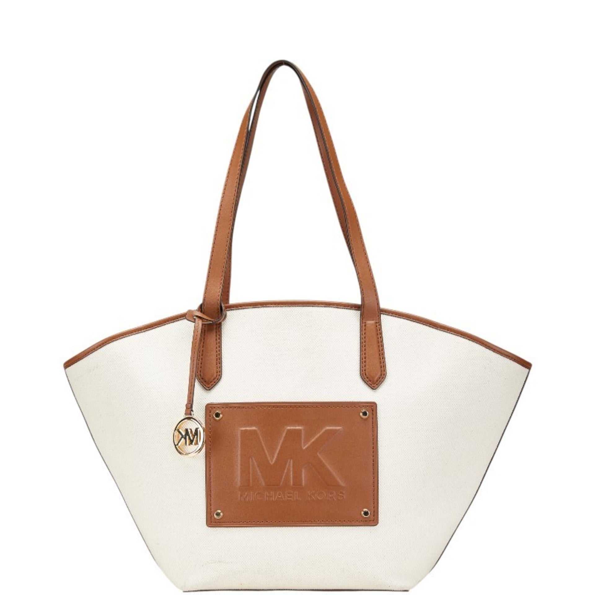 Michael Kors Kimber Tote Bag, Handbag, White/Brown Canvas and Leather, Women\'s