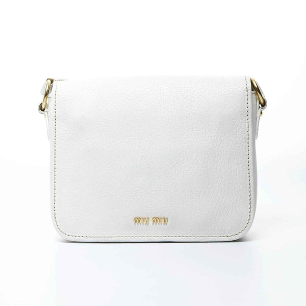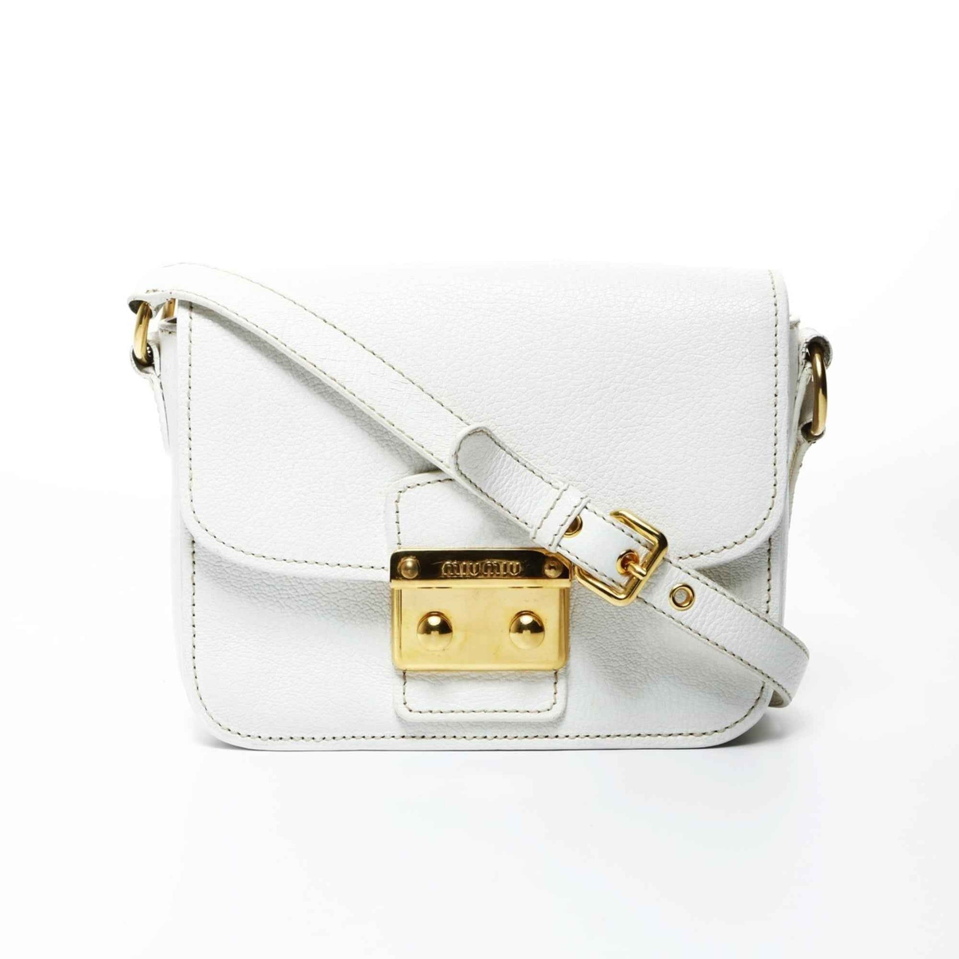 Miu Miu Miu Leather Madras Padlock Shoulder Bag in White