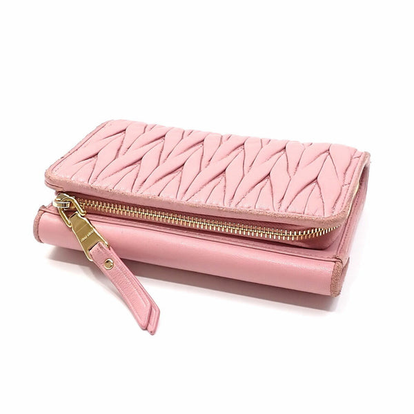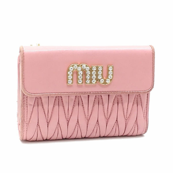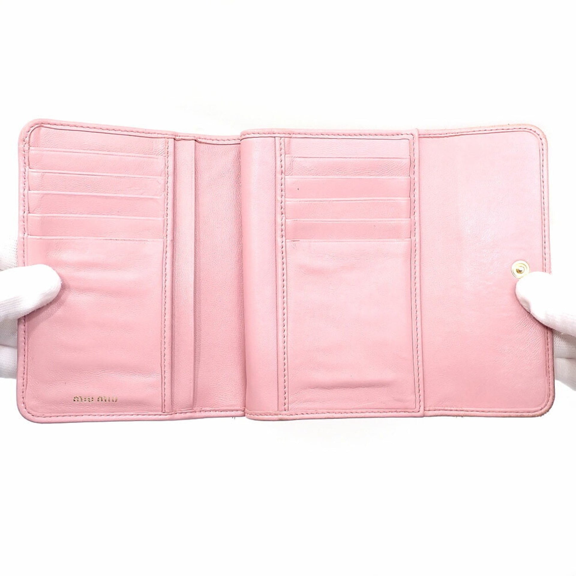 Miu Miu Miu Women\'s Bi-fold Wallet Pink Nappa Leather 5ML225 Matelasse C2240698