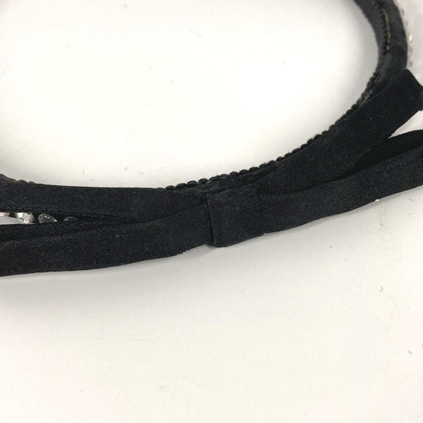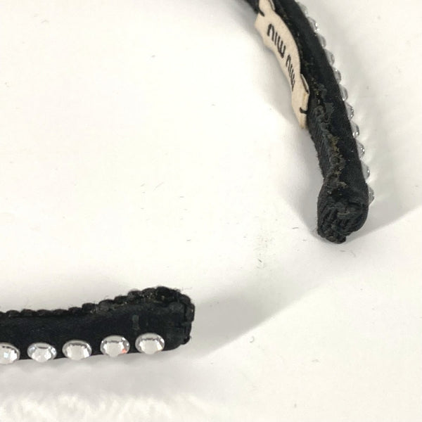 MIUMIU Miu Ribbon Rhinestone Hair Accessory Headband Satin Hairband Women\'s Black