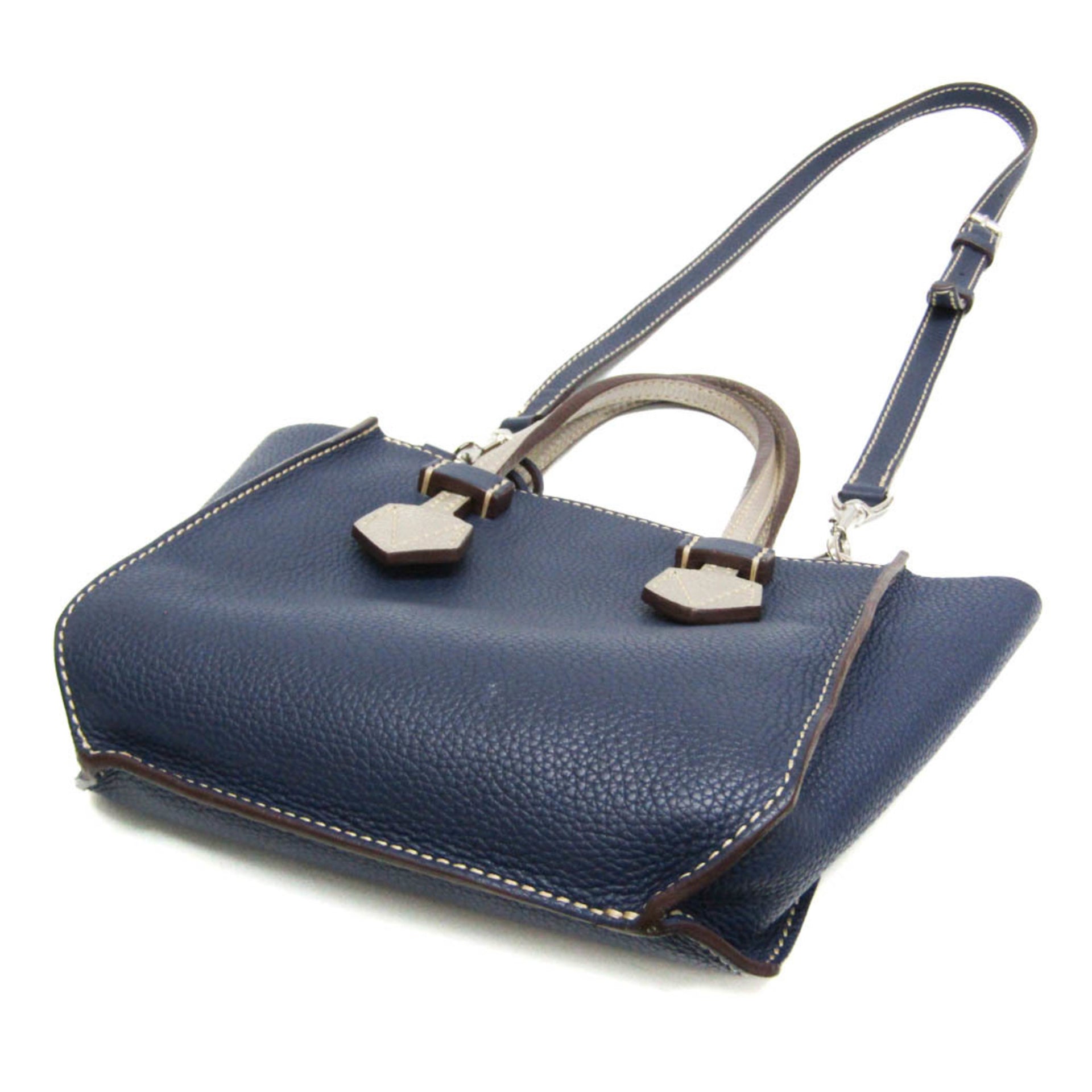 Moreau BREGANCON Women\'s Leather Handbag,Shoulder Bag Navy,Silver