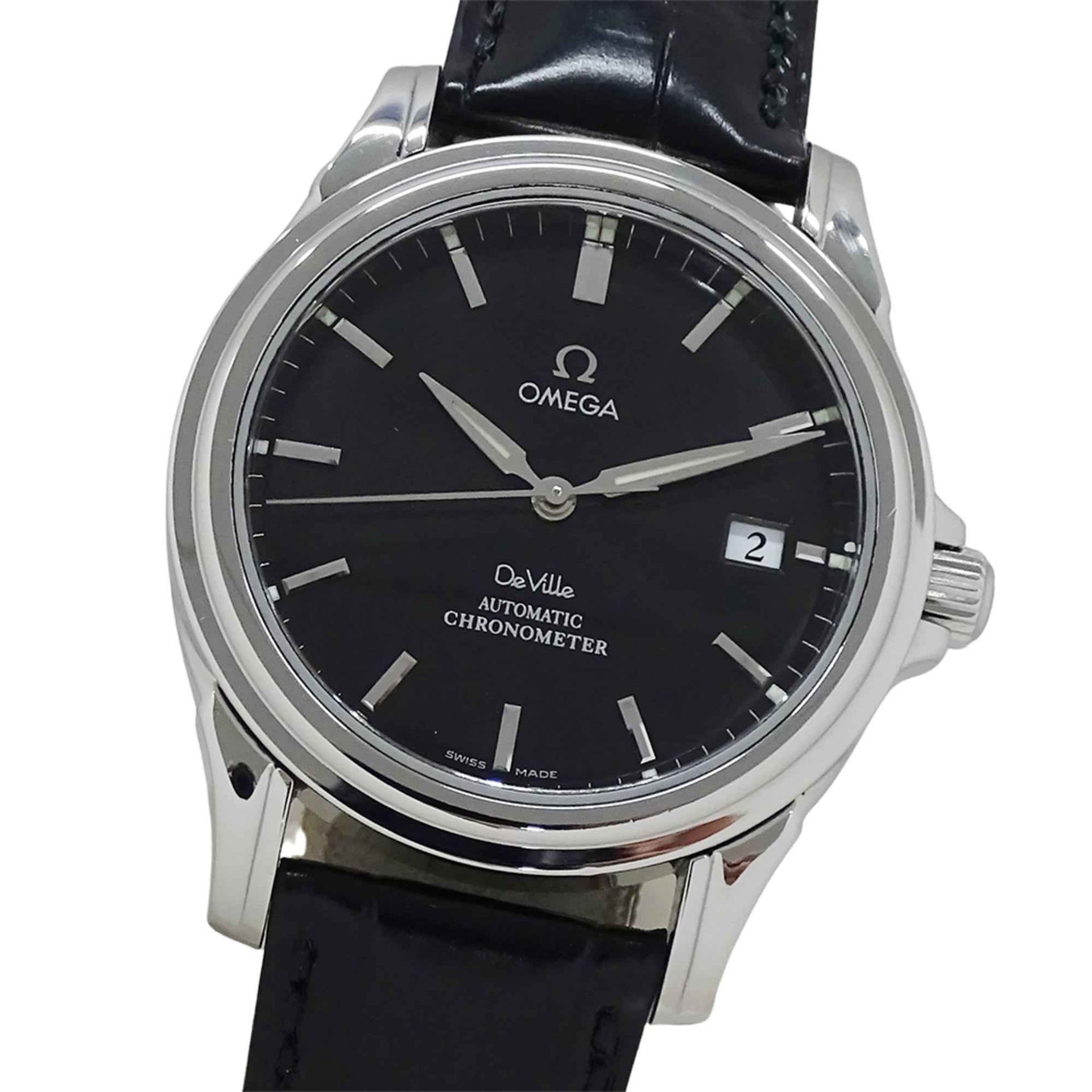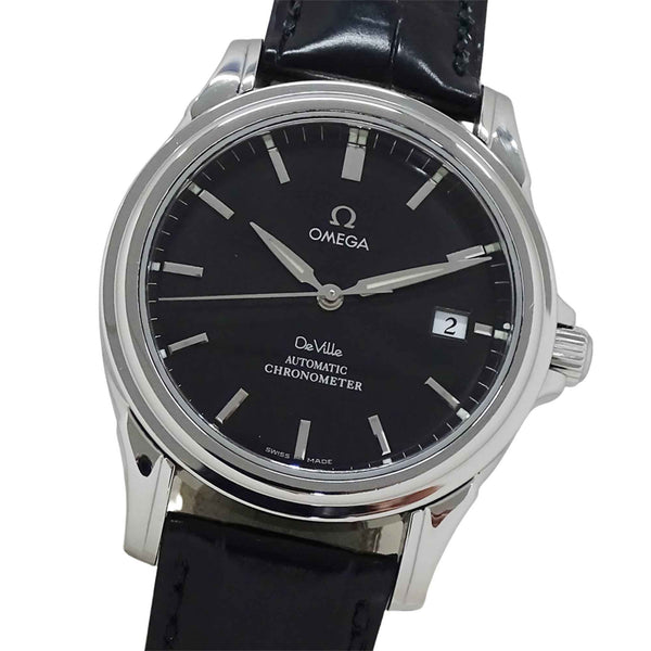 OMEGA De Ville 4831.50.31 Men\'s Co-Axial Chronometer Date Automatic Watch with Stainless Steel and Leather Strap, Silver Black Polished
