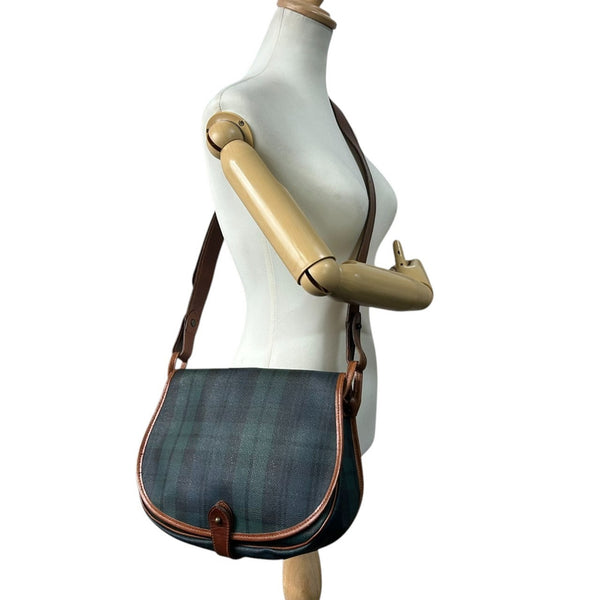 POLO RALPH LAUREN Polo Ralph Lauren Shoulder Bag Leather Tartan Check Green Flap Women\'s Men\'s Size M