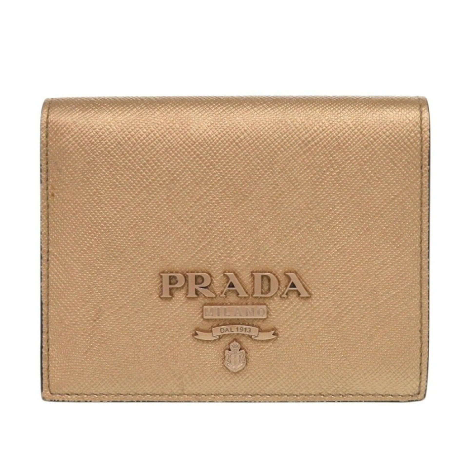 Prada 1MV204 Saffiano Leather Gold Bi-fold Wallet 0933PRADA