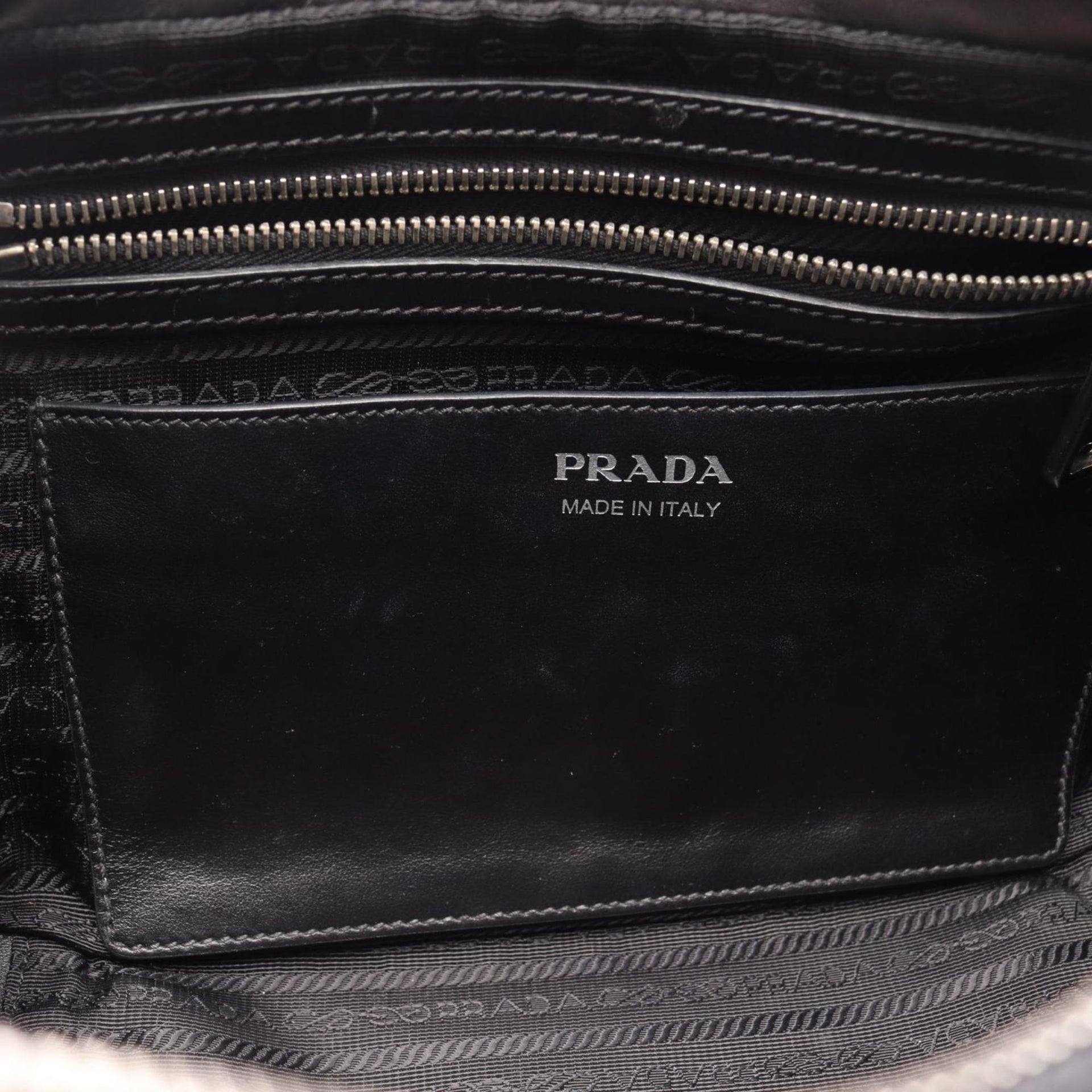 Prada Banana Print Leather Handbag for Women, Black/White/Pink, 1BB010