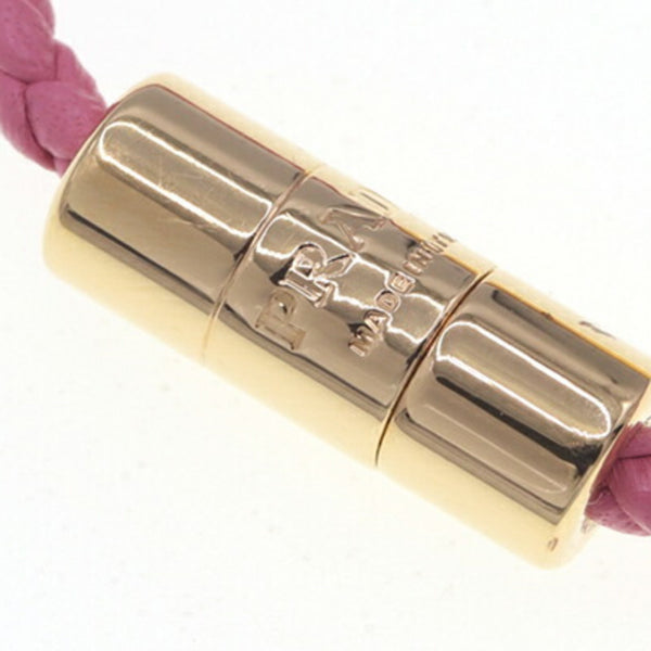 Prada Bracelet 1IB350 Pink Leather and Metal Triangle Women\'s PRADA