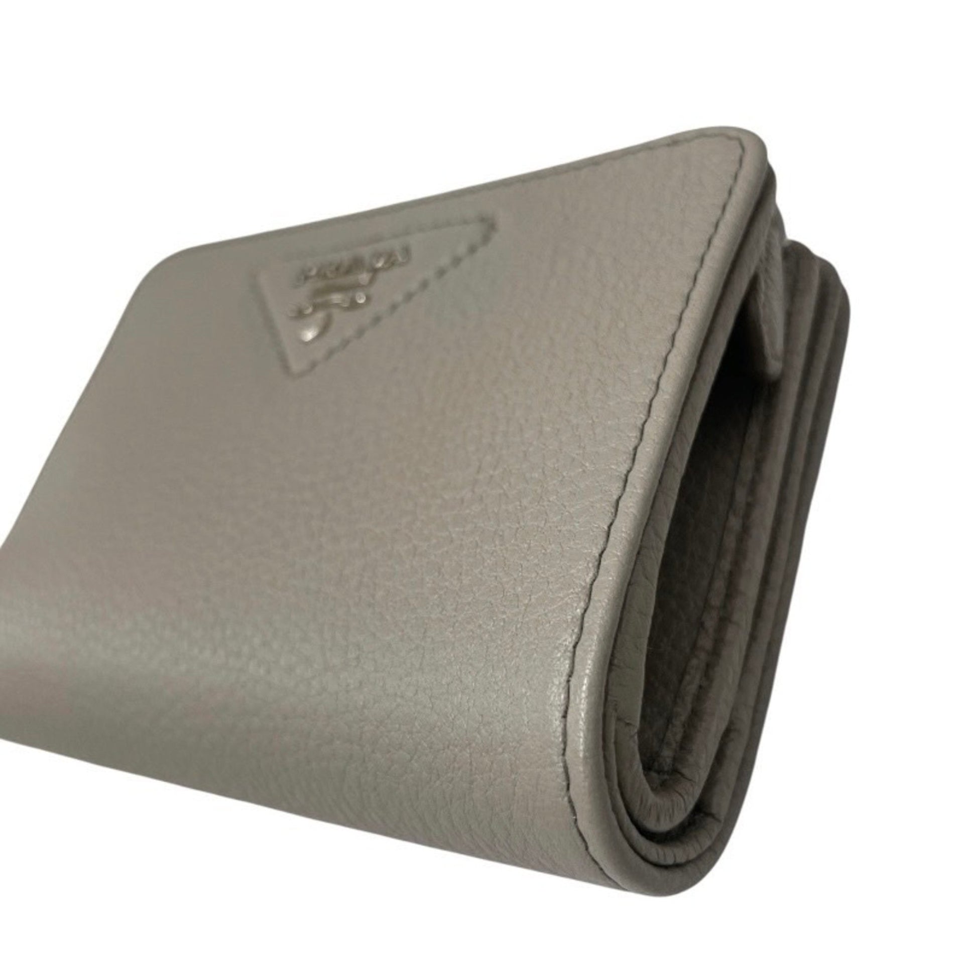 PRADA Compact Wallet 1ML018, Women\'s Leather Bifold Wallet, Greige, L-Shaped Zipper