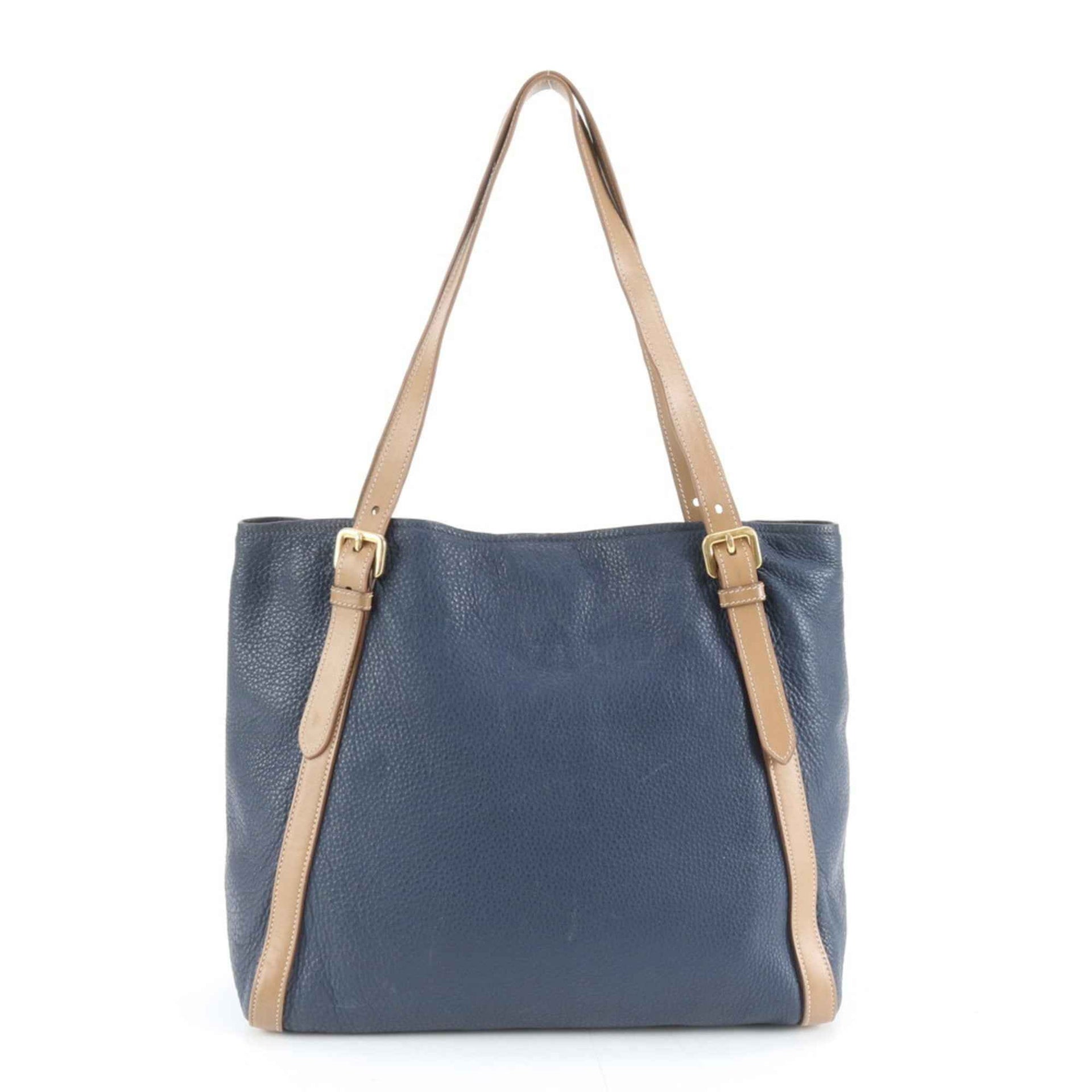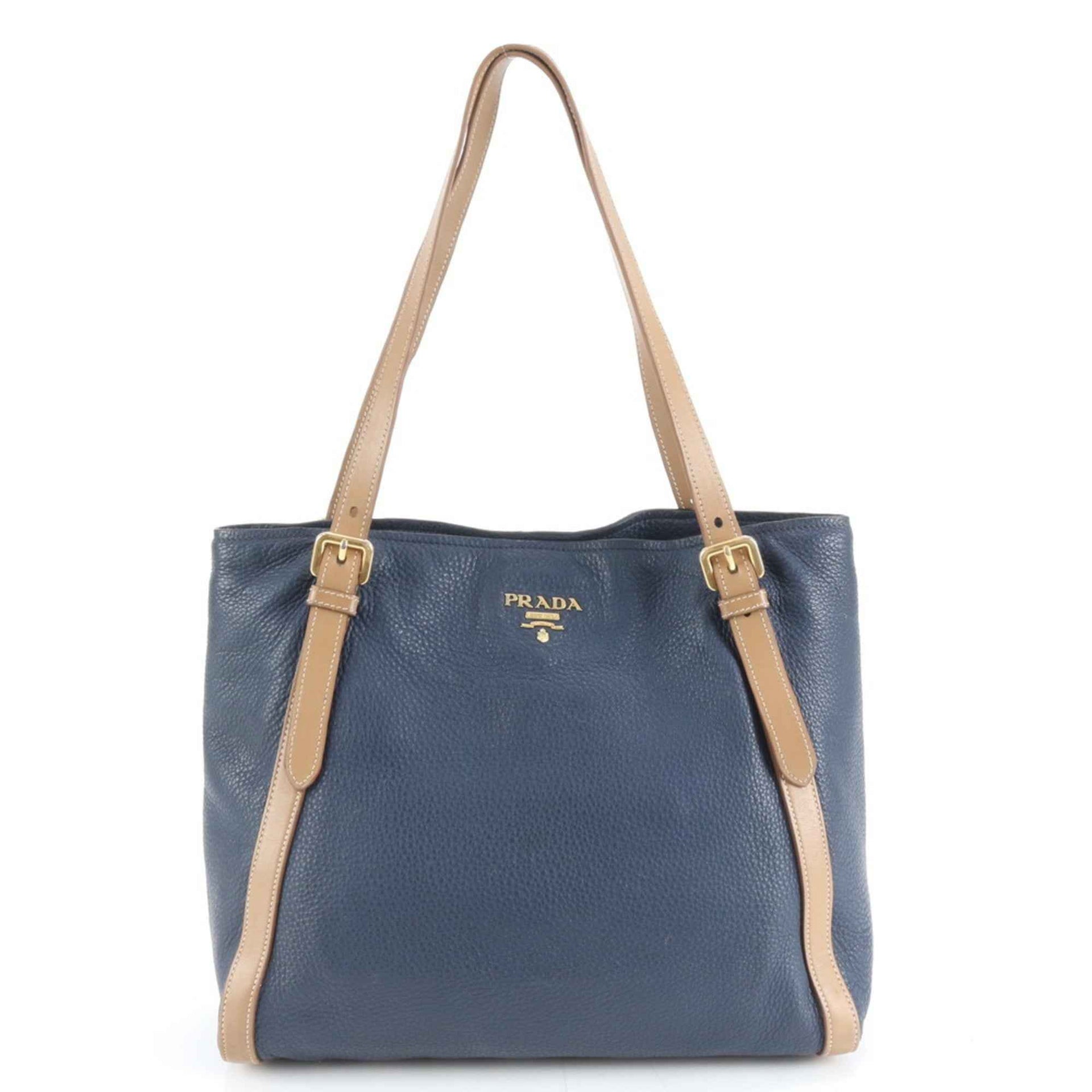 Prada Leather Tote Bag Shoulder/Handbag Navy Women\'s