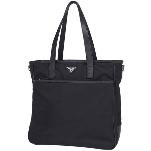 Prada logo plate tote bag, shoulder nylon nero (black), women\'s