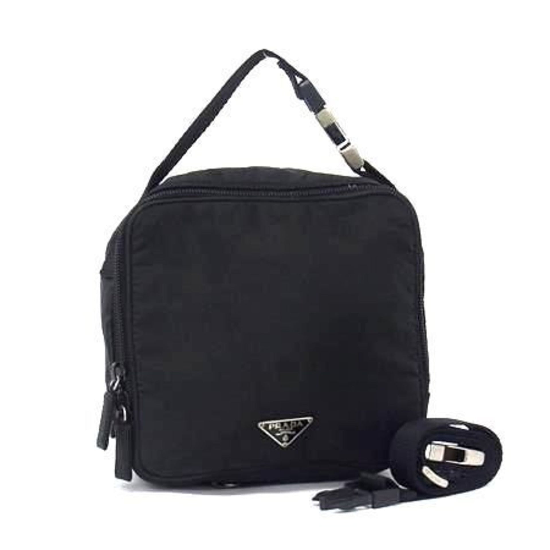 PRADA MV550 3-Way Shoulder Bag/Waist Bag in Black Nylon with Triangular Plates for Men and Women, Pochette, Belt