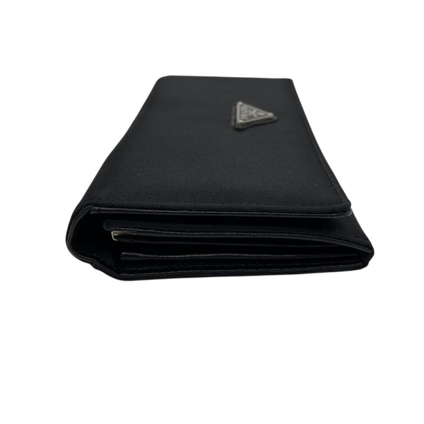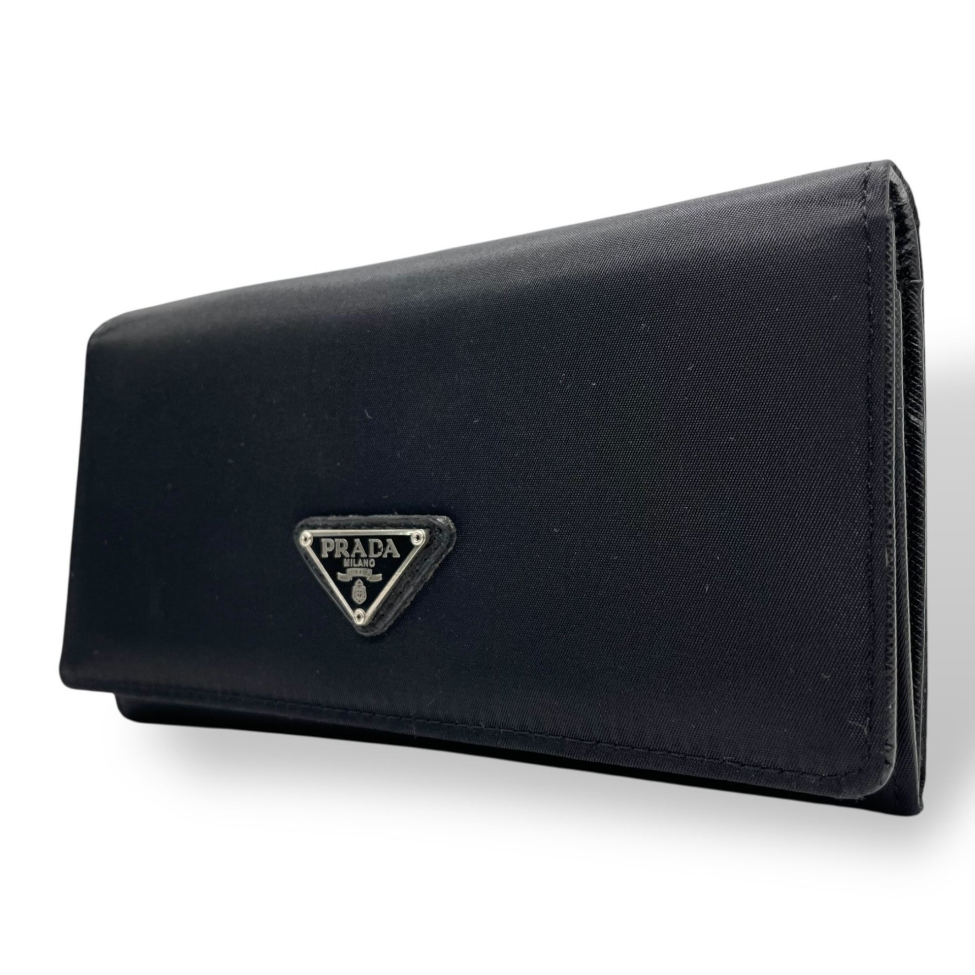 Prada PRADA Nylon Leather Long Wallet Black Triangle Logo Plate Saffiano Round Flap M3