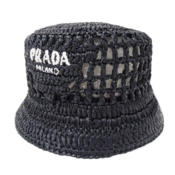 Prada Rayon Woven Fabric Bucket Hat for Men and Women, Black, Size M (1HC137)
