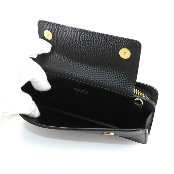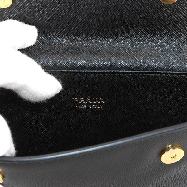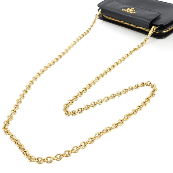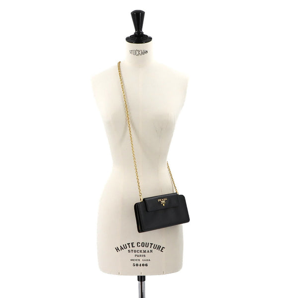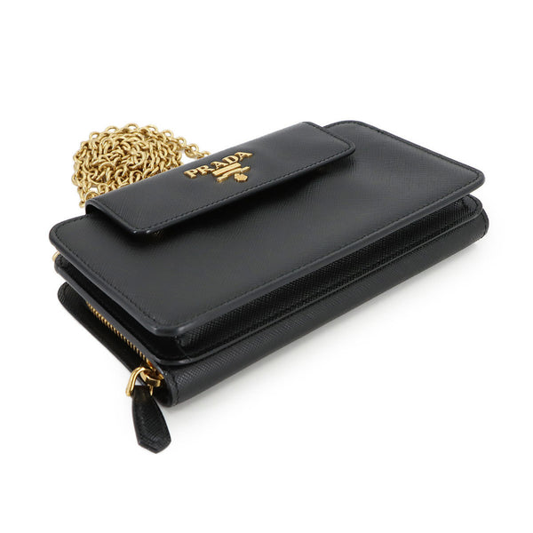 Prada Saffiano Chain Wallet, Black Leather with Gold Hardware, 1DH048