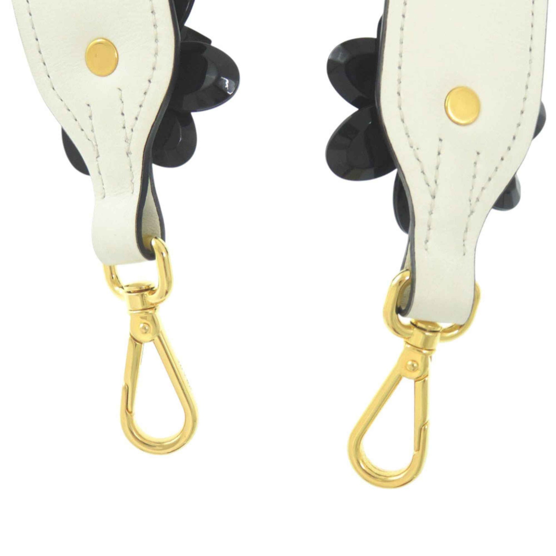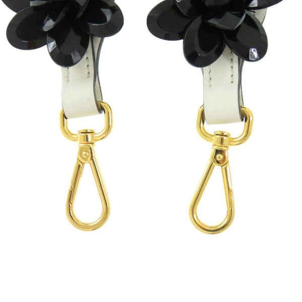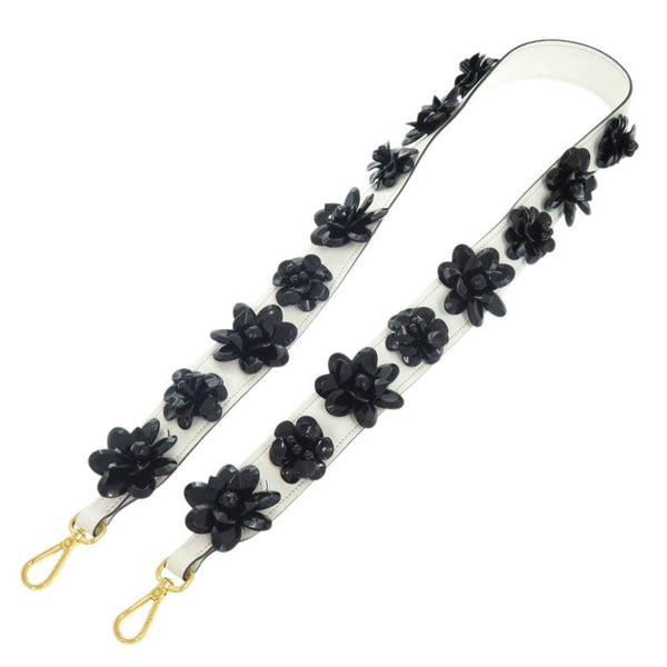 Prada Shoulder Belt White x Black Flower Leather Strap 1085 PRADA
