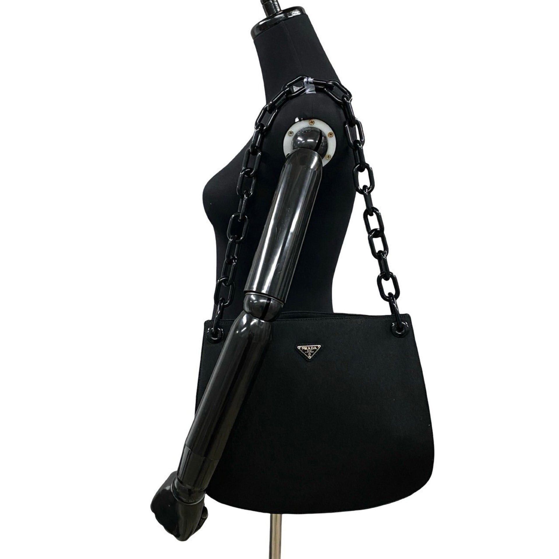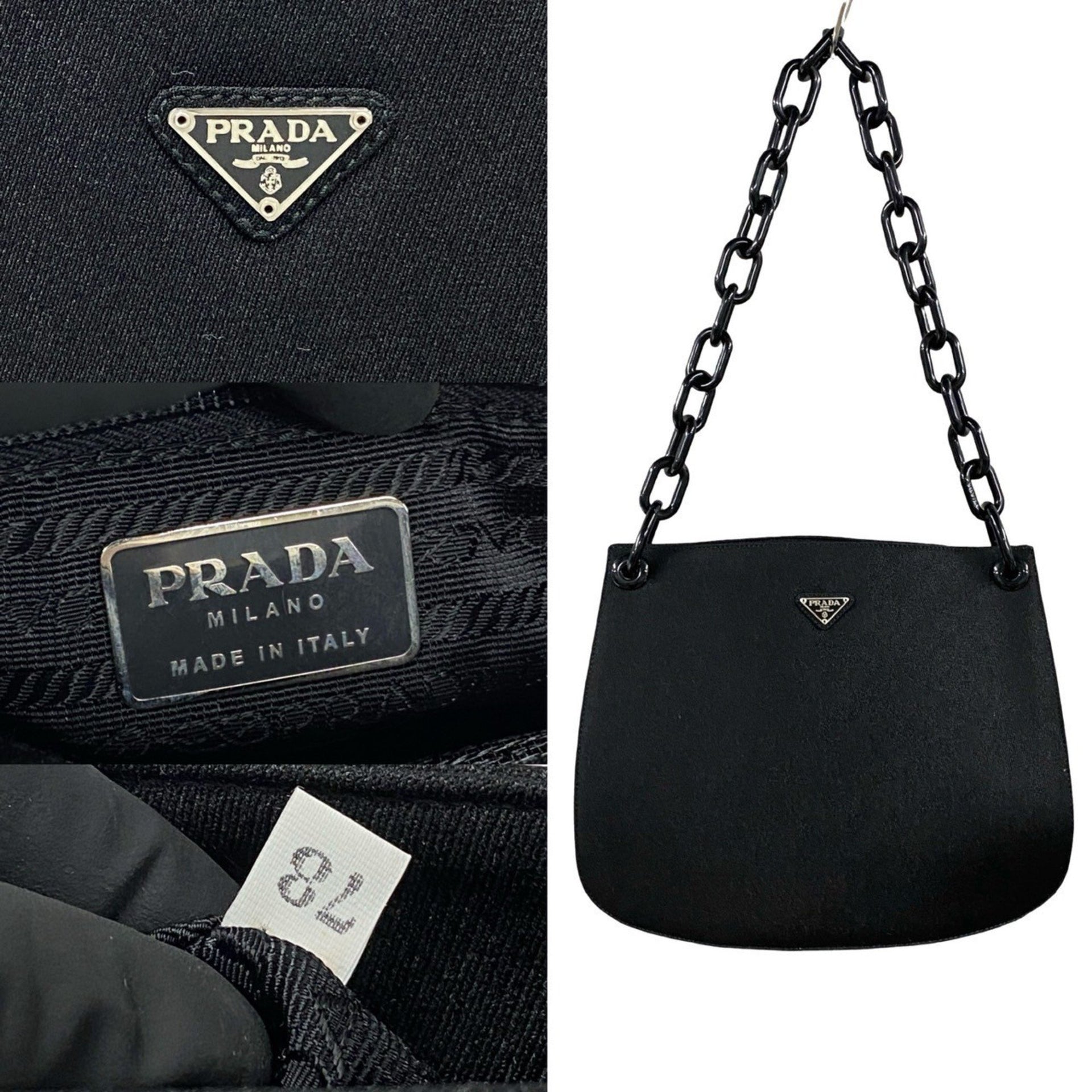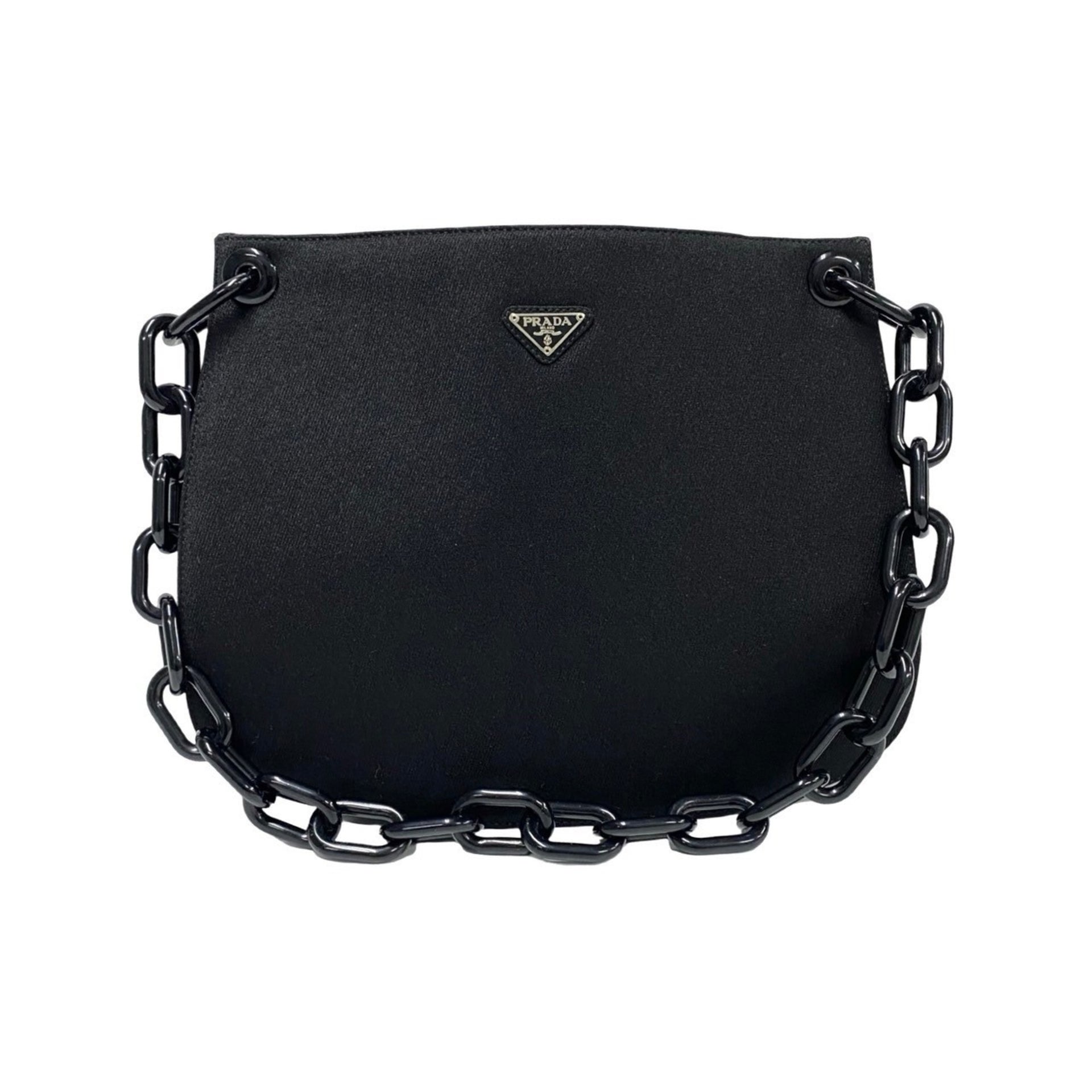 PRADA Triangle Logo Canvas Plastic Chain Semi Shoulder Bag Tote Black 35025