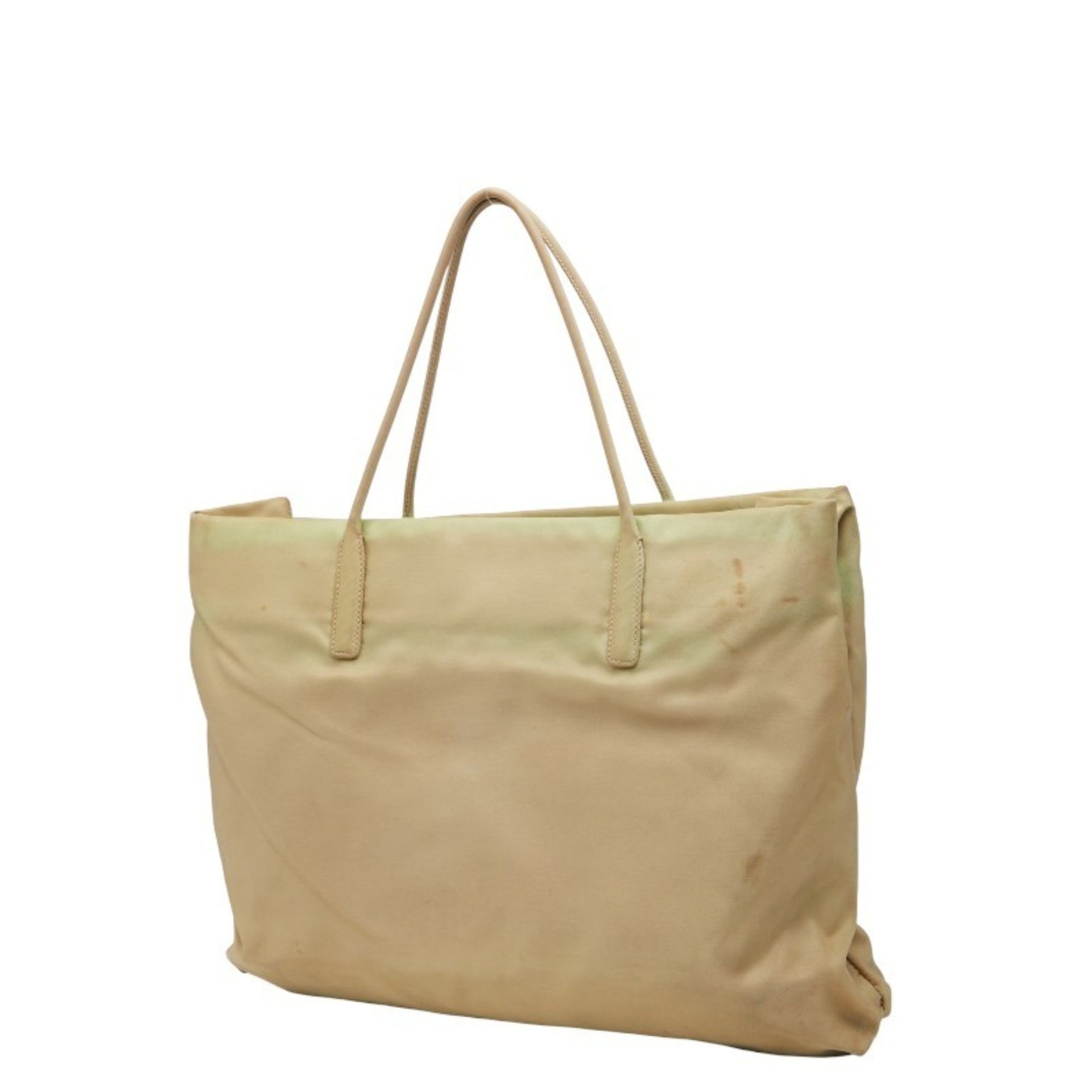 Prada Triangle Logo Plate Tote Bag Handbag Beige Nylon Women\'s PRADA