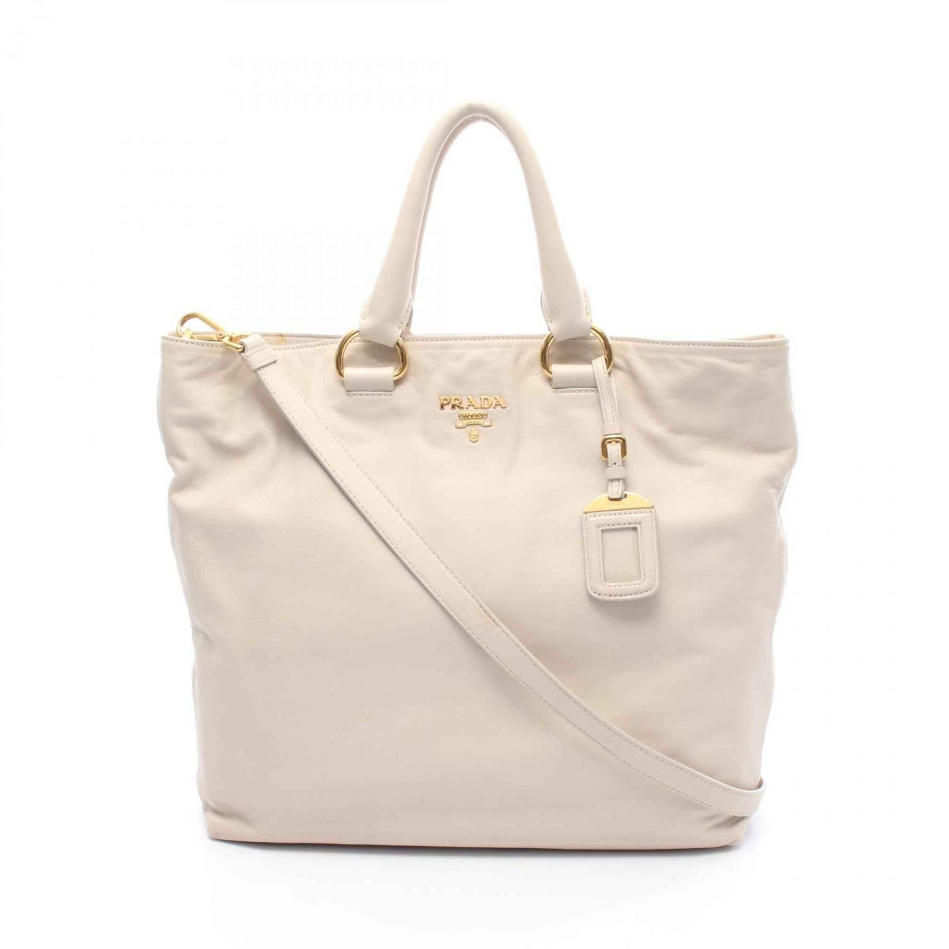 Prada VIT.DAINO Tote Bag, Leather, Women\'s, Ivory, BN1713